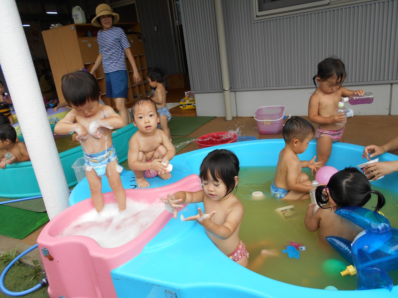 すみれさん、ひよこさんは今日もプール遊び!!