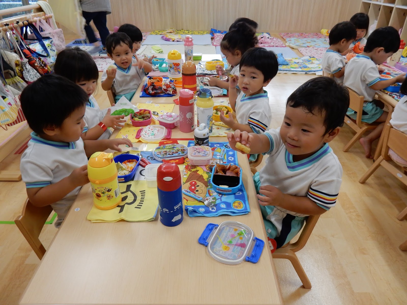 今日は、牧歌の里には行けなかったけれど、お家から持ってきたお弁当をみんなとっても楽しみにしていました!お友達と見せ合いっこをしながら、たのしく、美味しくいただきましたよ!