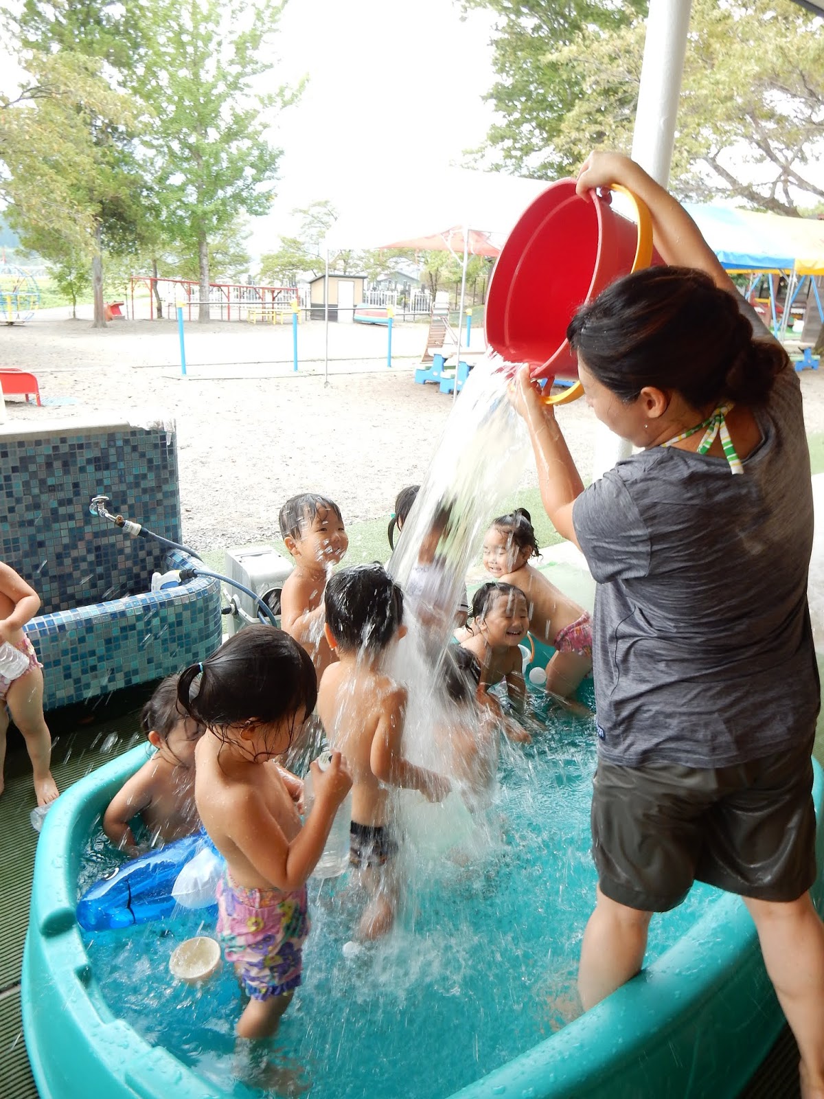 8月最後の今日。朝は少し雨が降ったり、曇り空でしたが、最後のプール遊びを楽しむことができました!