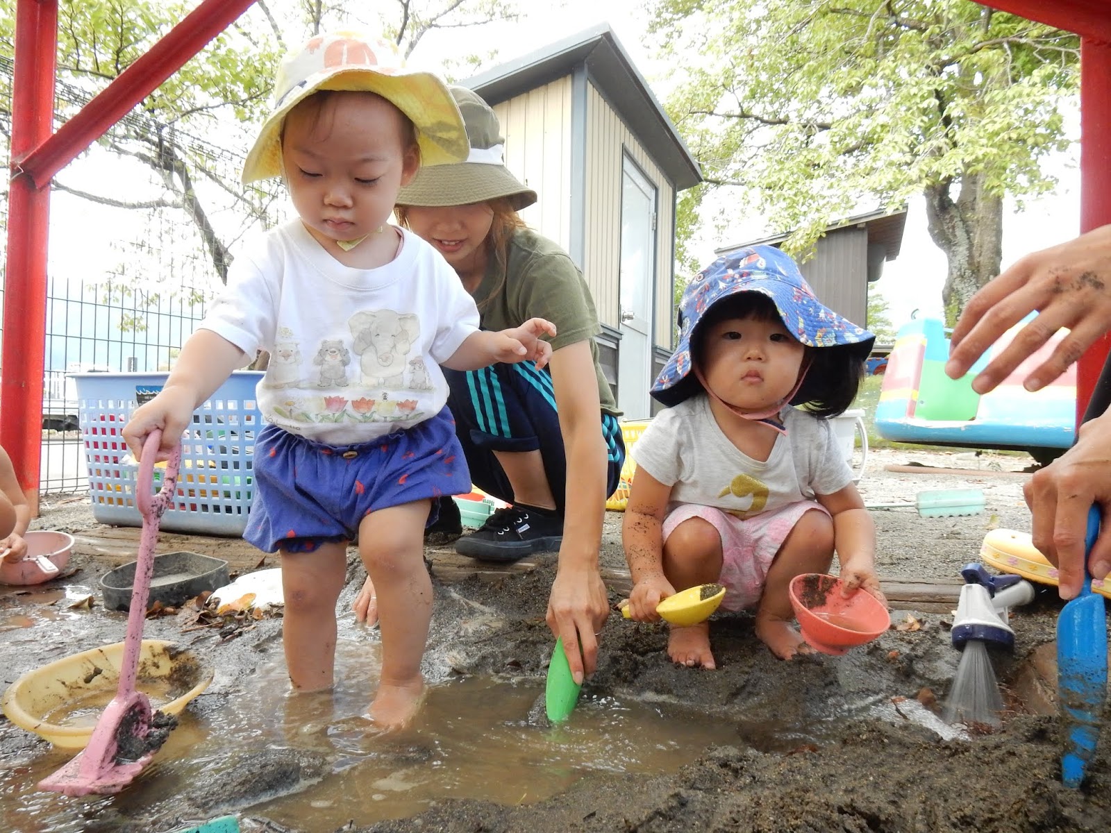 今年の夏は、本当に暑い日が続き、たくさん水遊びをすることができました!新しいプールや、泥んこ遊びなど、各クラスで夏を満喫しました♪