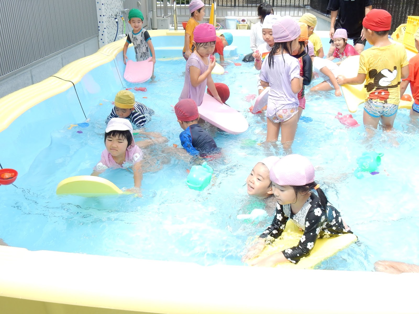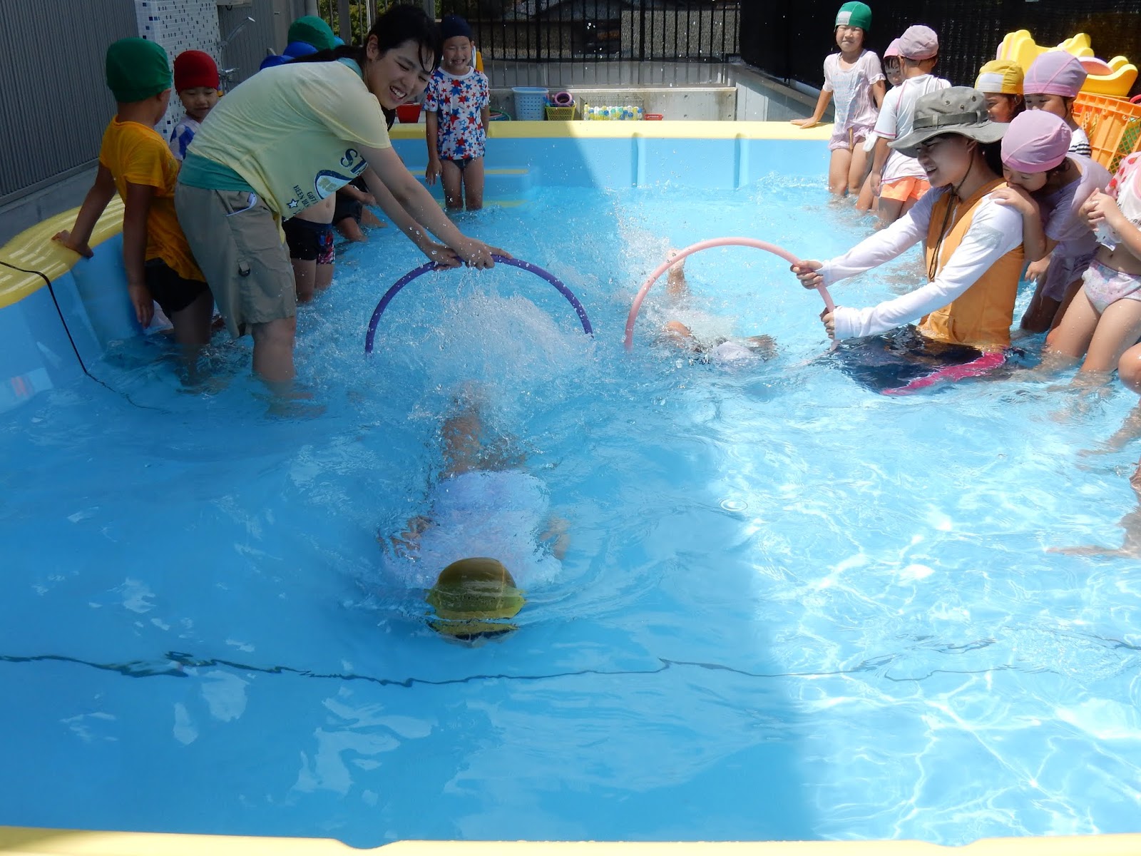 夏の暑さをしのぐだけでなく、顔が付けられるようになるなど、出来ることが増えたことで、自信を付けたお友達もたくさんいたことと思います。とっても楽しく、そしてとっても有意義な時間が過ごせた夏の水遊び。また来年が楽しみですね!