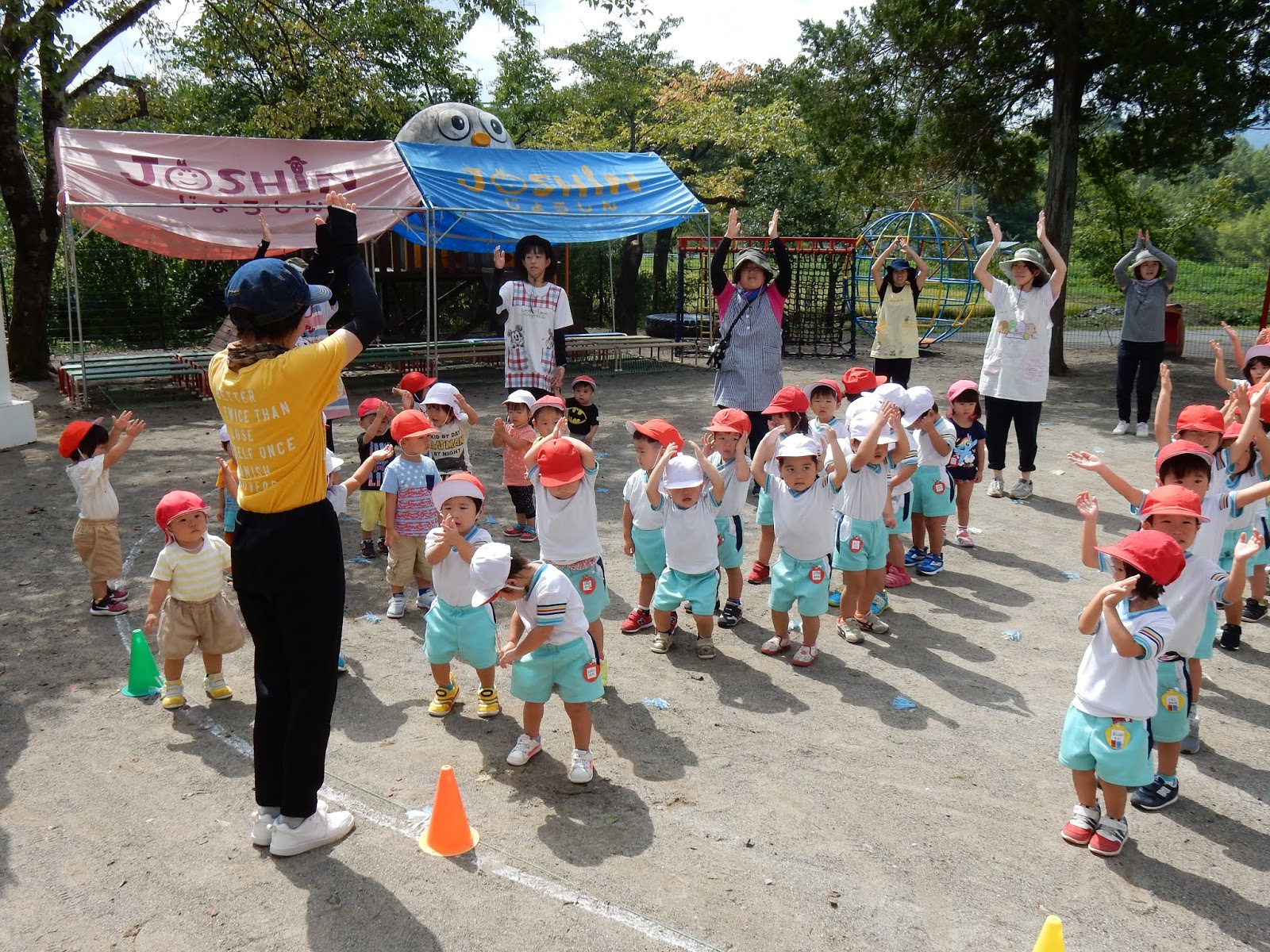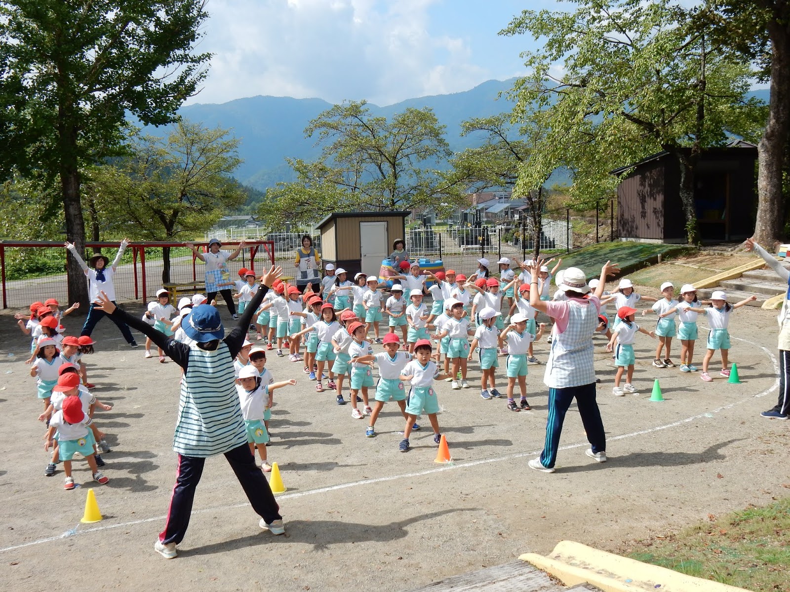 体操も、運動会に向けて新しい体操を覚えました!体を一杯動かす体操、みんなもう覚えて楽しく踊っています!膝を曲げたり、腰を曲げたり、ぱっと手を広げたり…テンポの速い音楽に合わせて体を動かすと、なかなかハードで、大人もいい運動になります!