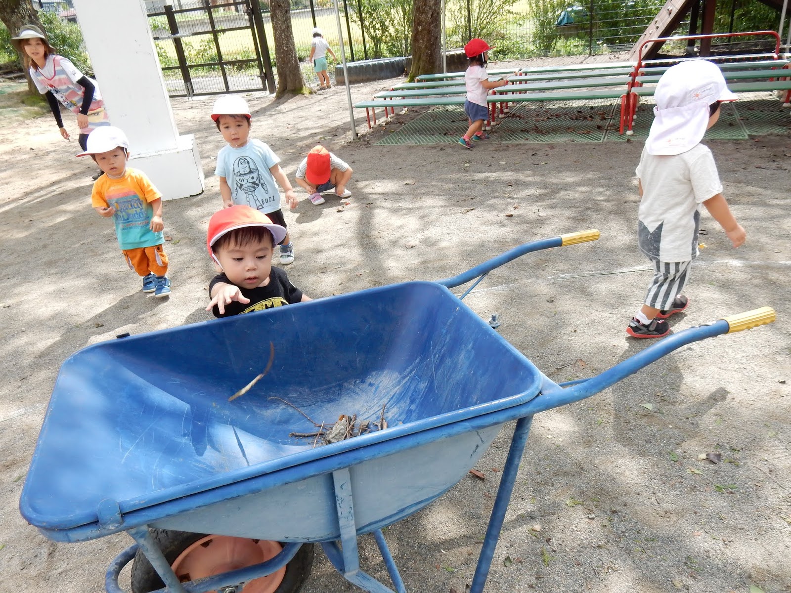 今日は体操の後、園庭の石拾いをみんなでしました。練習中の怪我防止です!!