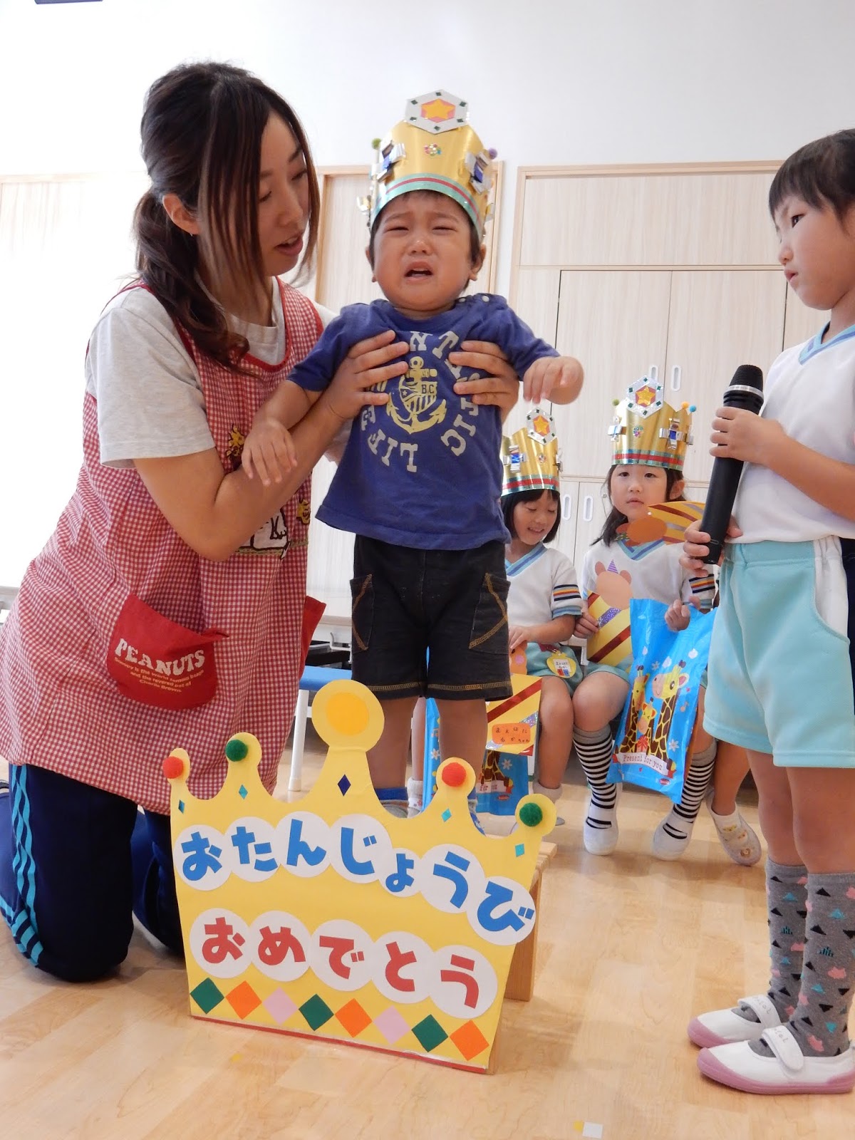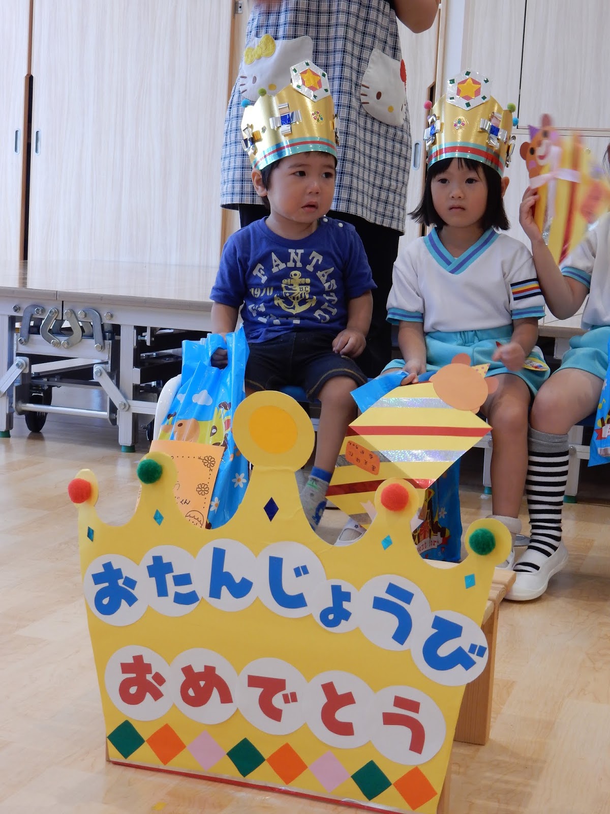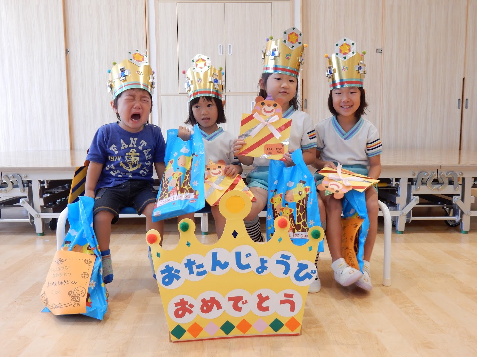 今月は、4人のお友達が1つ大きくなりましたよ!みんなでお祝いしました!