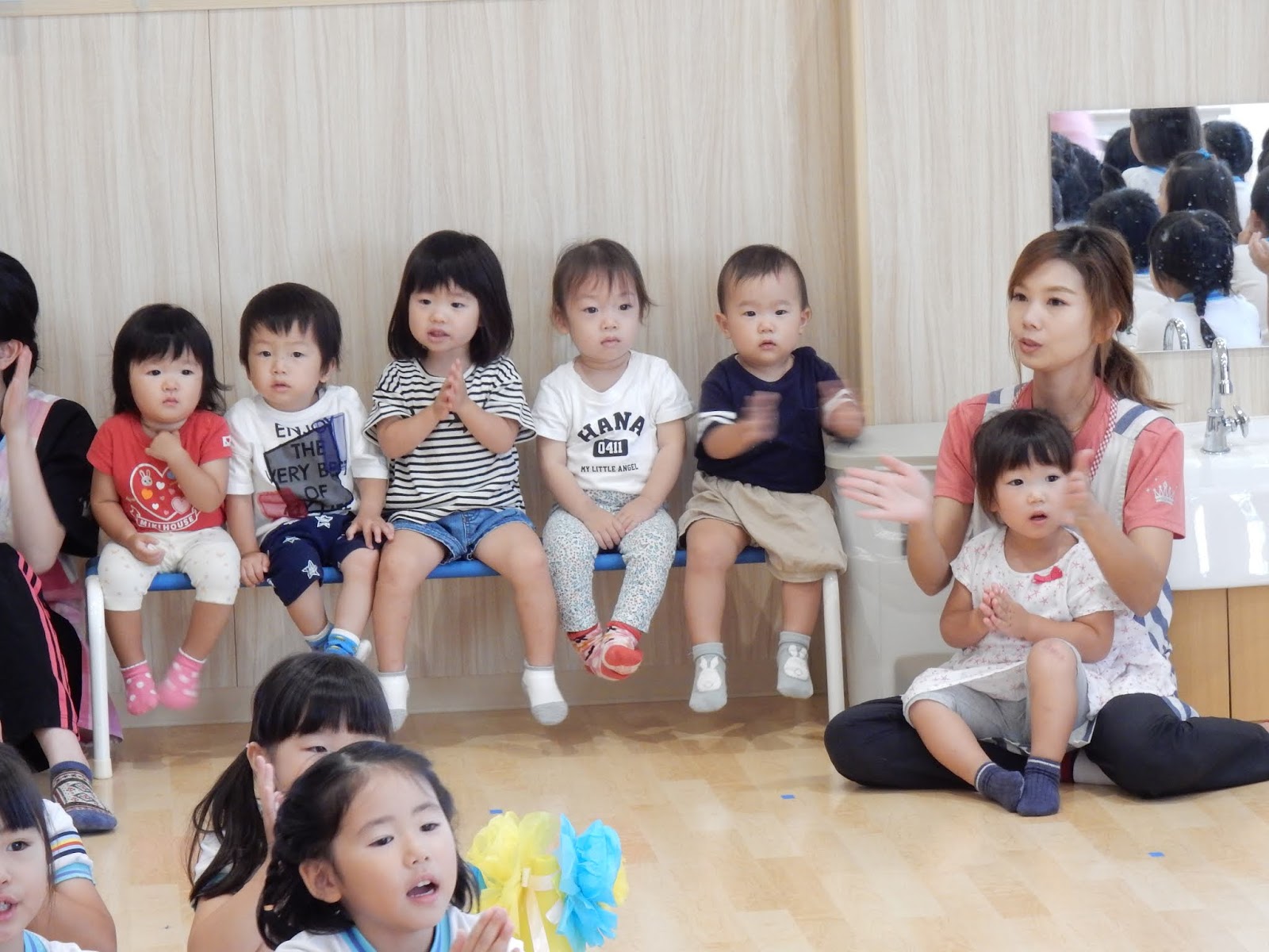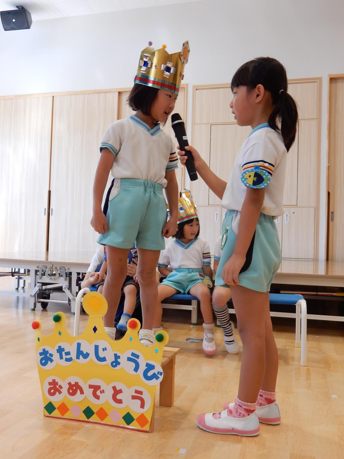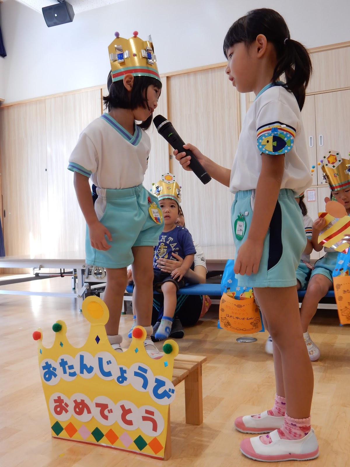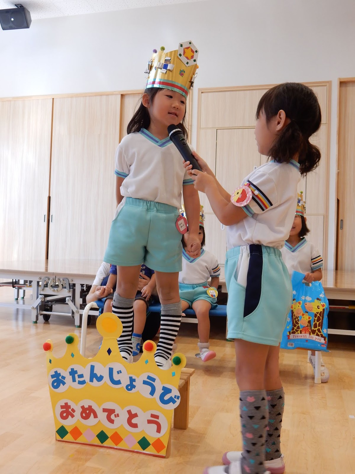 今月は、4人のお友達が1つ大きくなりましたよ!みんなでお祝いしました!