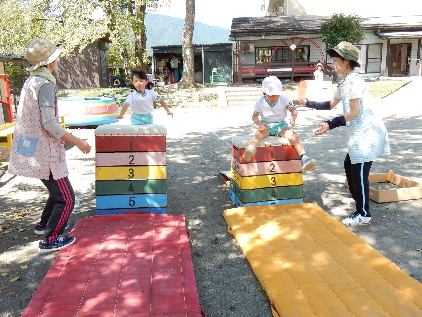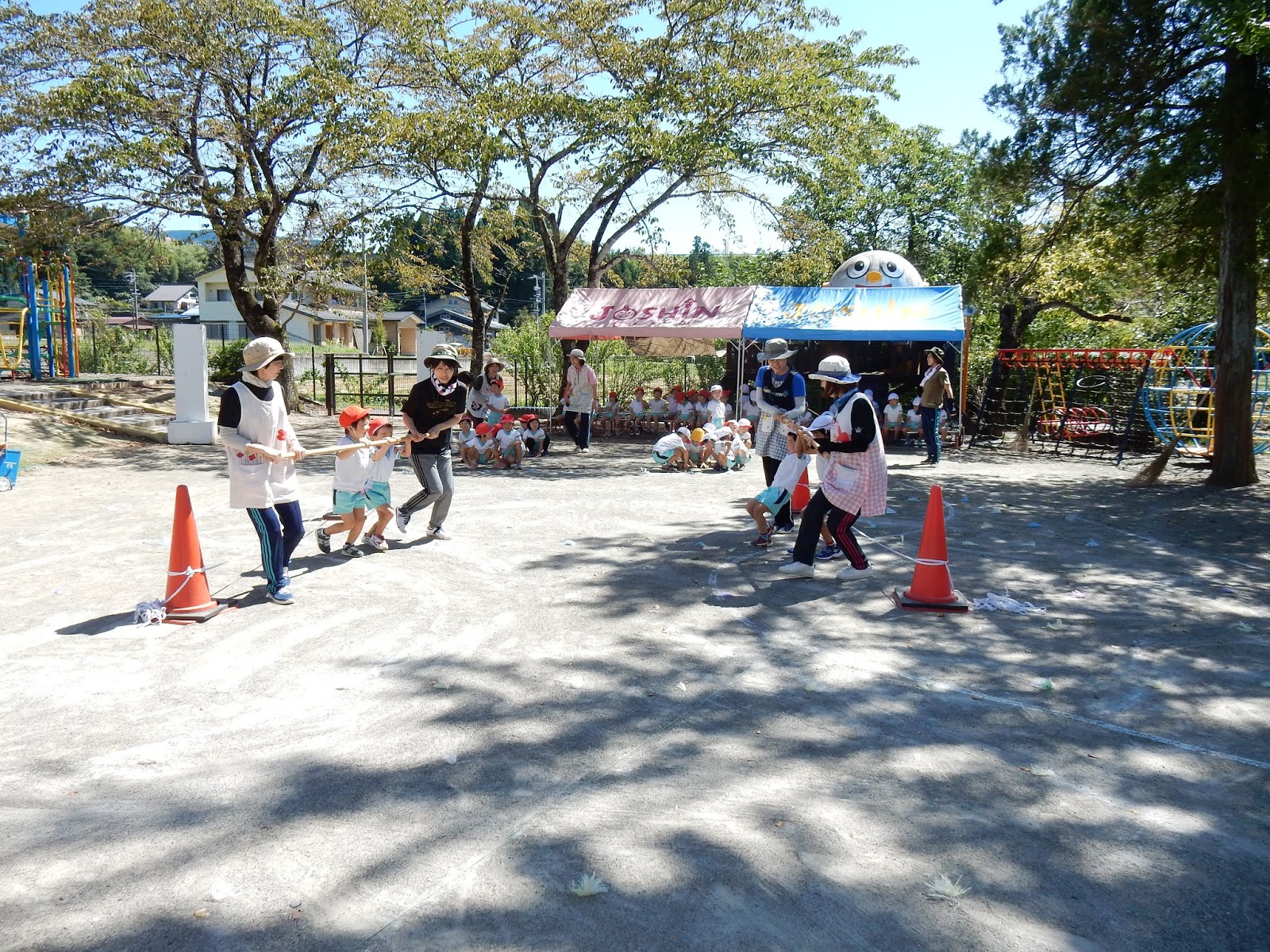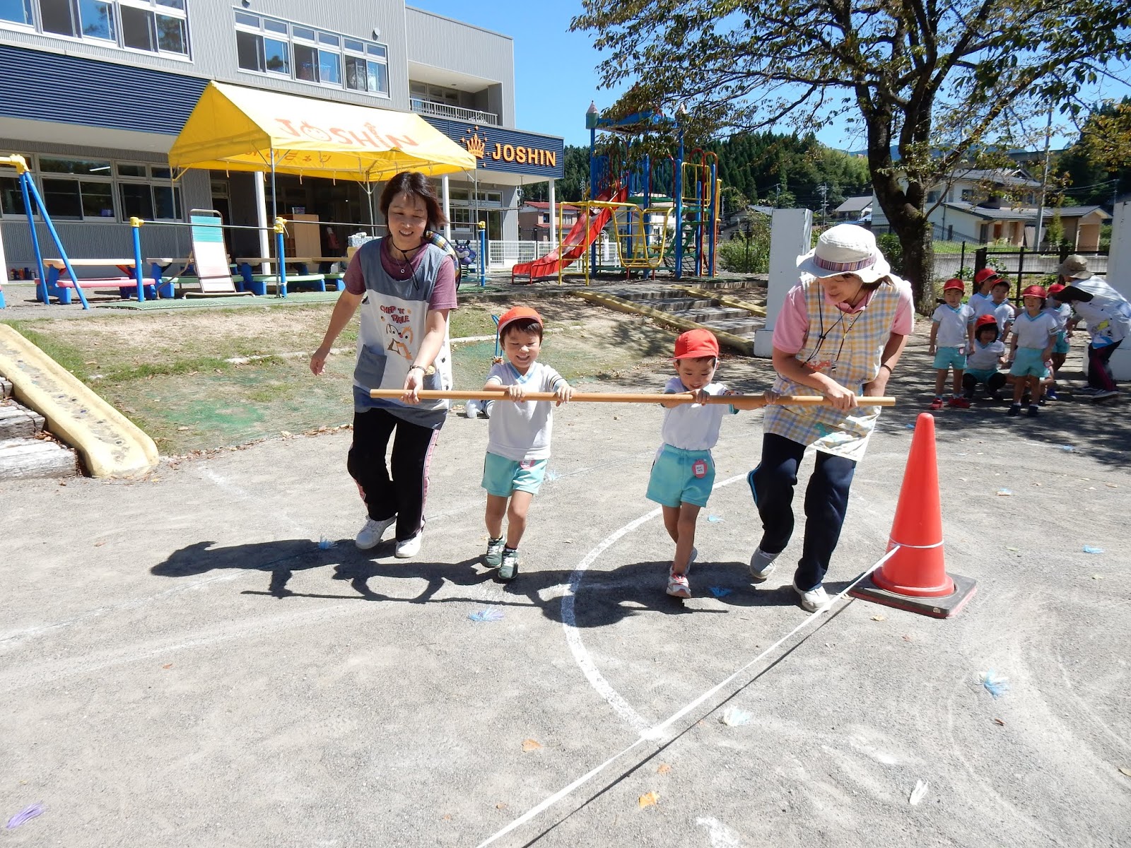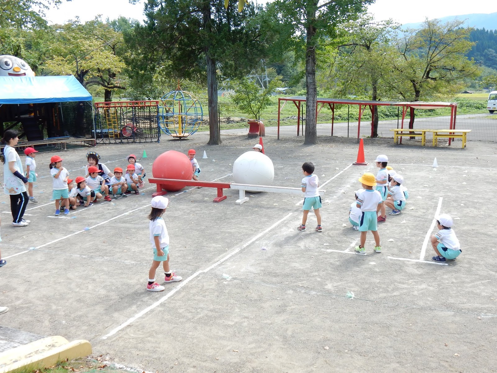今までの練習に加えて…大きいクラスは、親子競技の練習も進めています。本番は、もちろん、お家の方と一緒に行いますが、練習は、先生と一緒!・・・これがなかなか体力勝負です(汗)