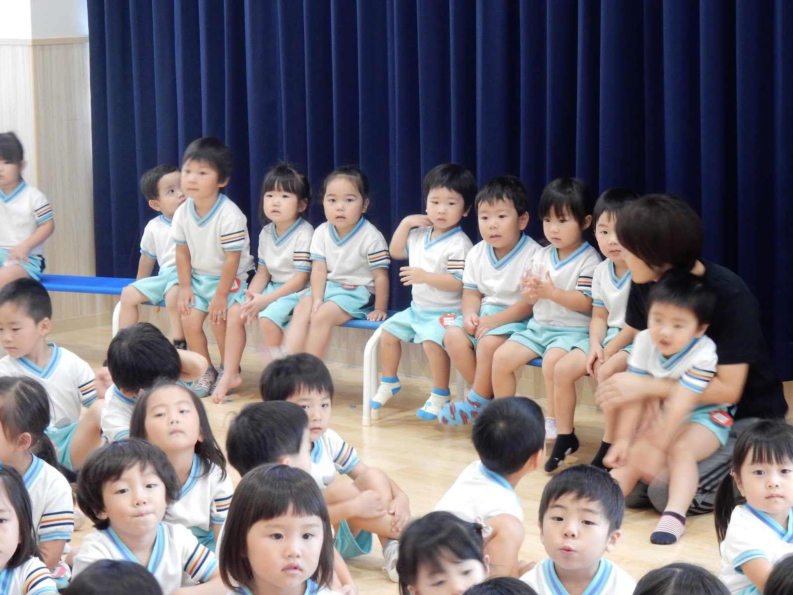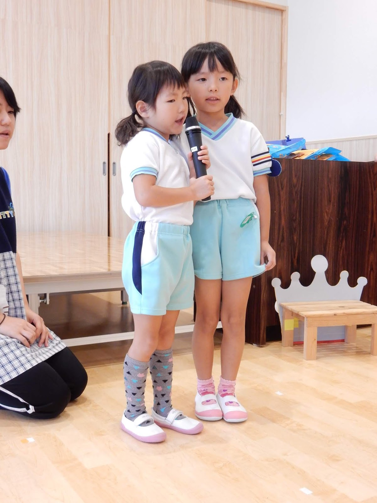 やっぱり、みんなの前に立つことは、緊張しますよね…小さいお友達は、思わず涙が出てしまう事も。。。プレゼントをもらって少し落ち着いたみたいです♪