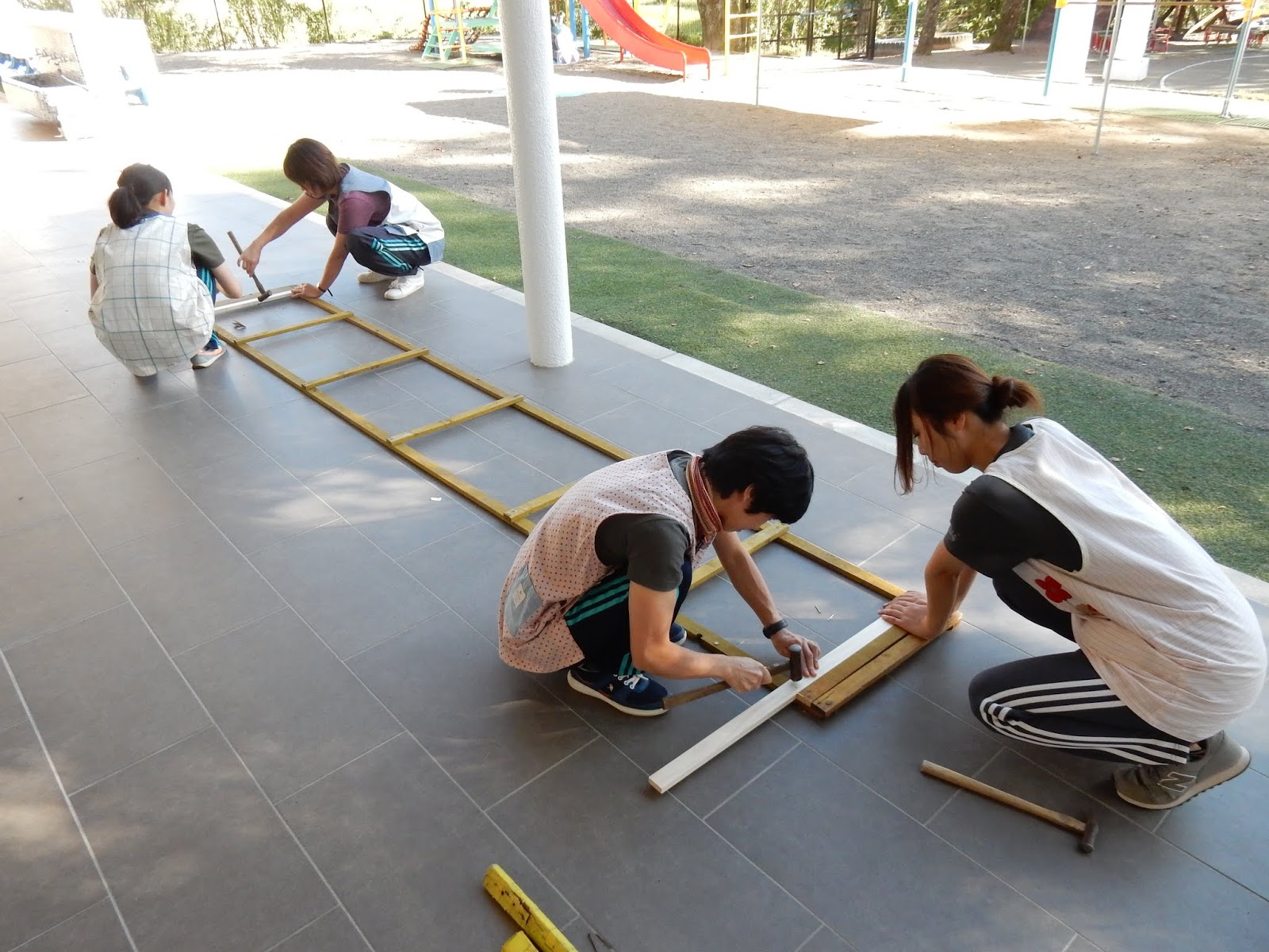 遊具を持ち出して観覧席の確保をしたり、園庭の整備や、入退場門の飾り付けなど...