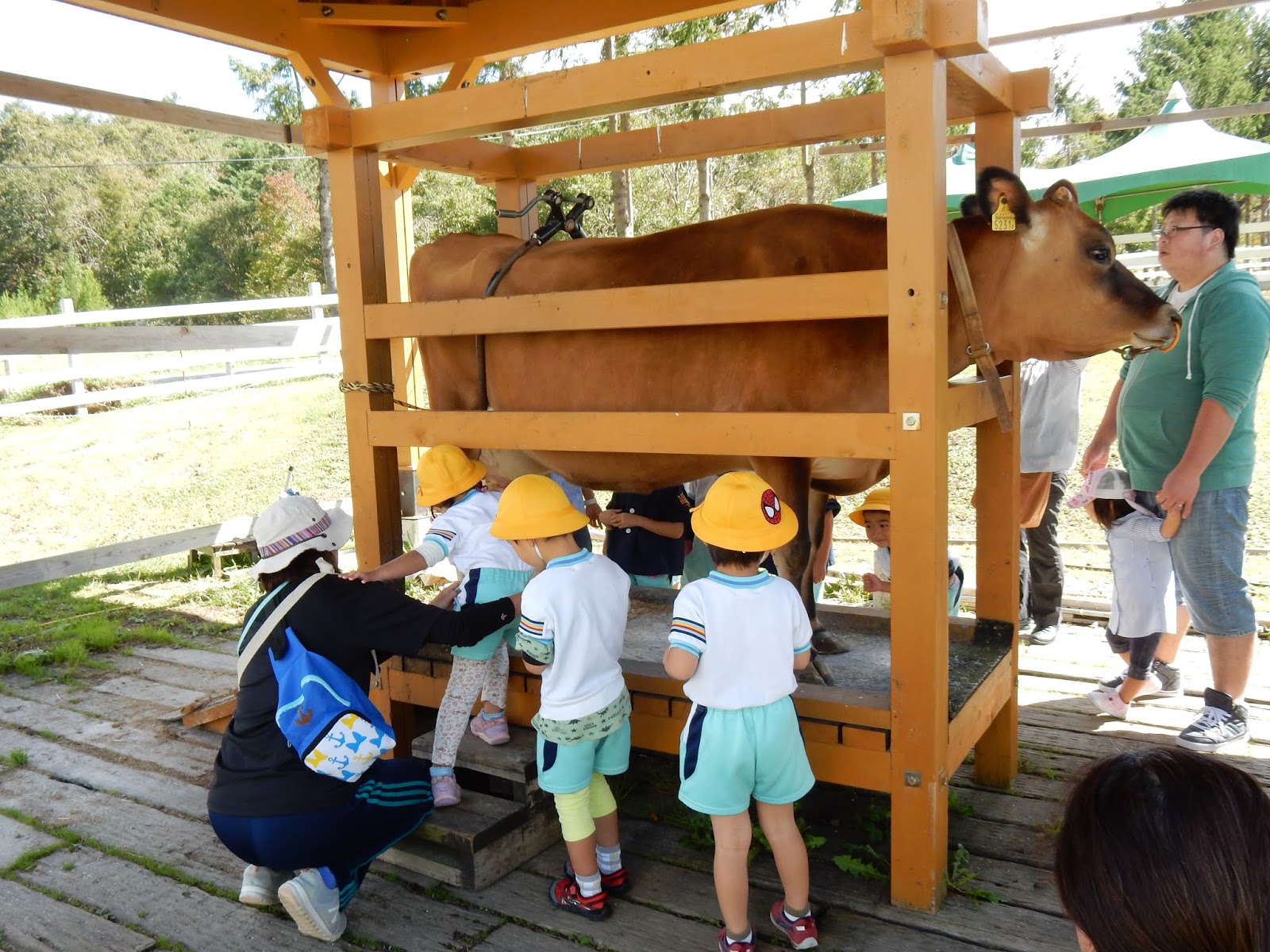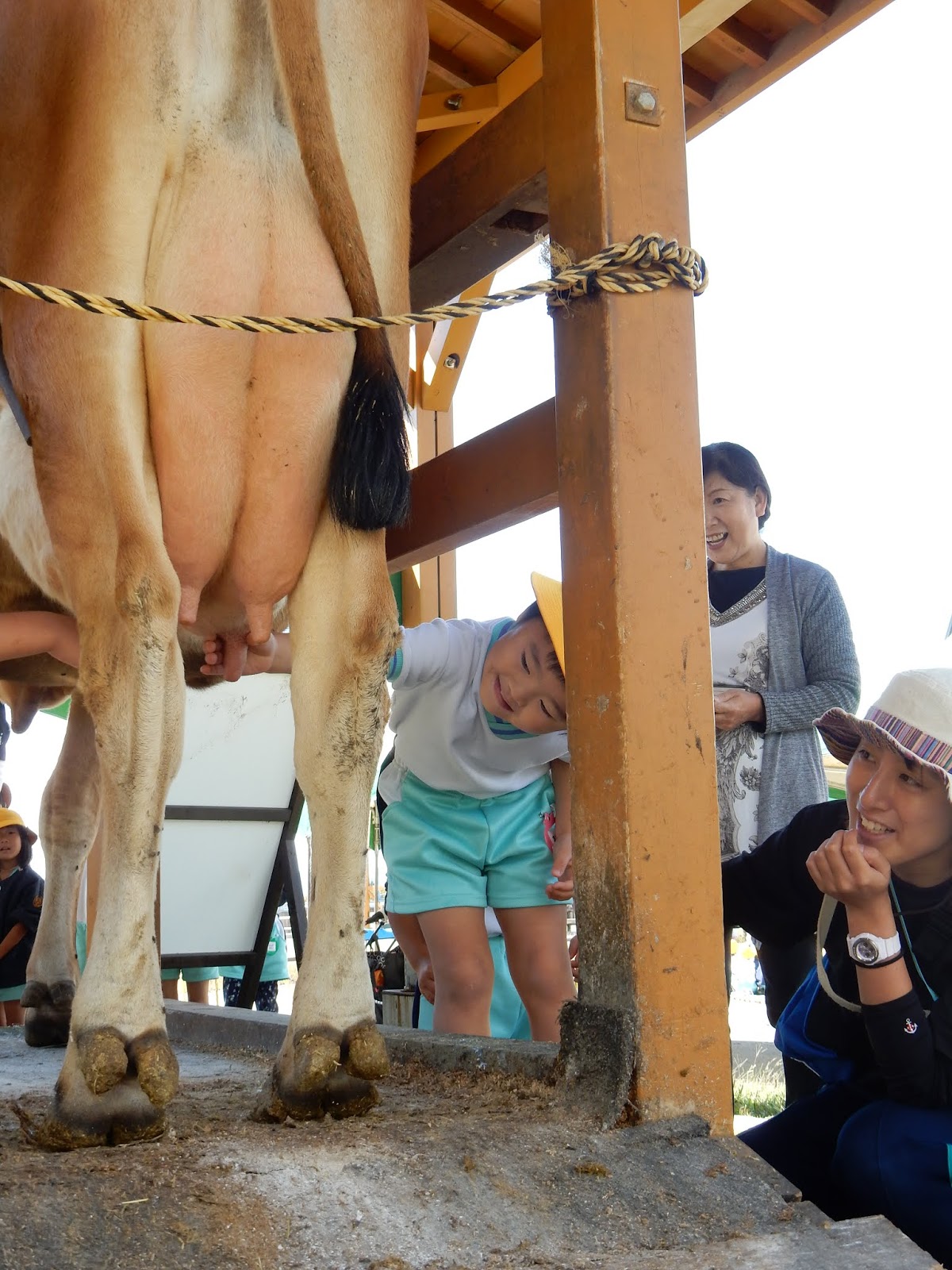 ゆりさんや、ひまわりさんは、牛の乳搾り煮も挑戦しました!難しかったようで、『出なかった~!』と言っている子もいましたが、“あったかかった” ”ふわふわした”なぁんて感想が聞けましたよ!