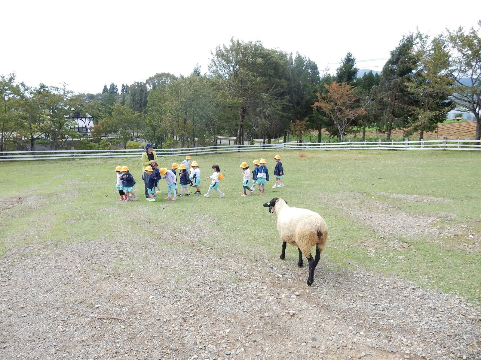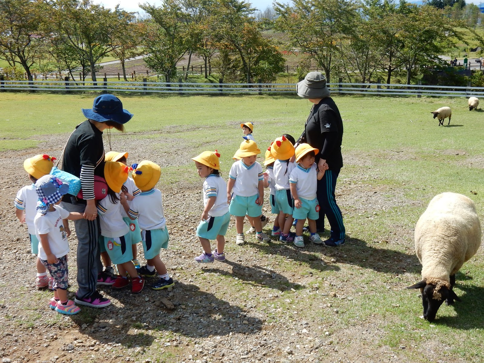 たんぽぽさんも…ご覧のとおり、最初は微妙な距離を保って、先生と一緒に移動…(笑)なかには、羊よりも、下に転がっているう〇ちの方が気になっていたお友達も…