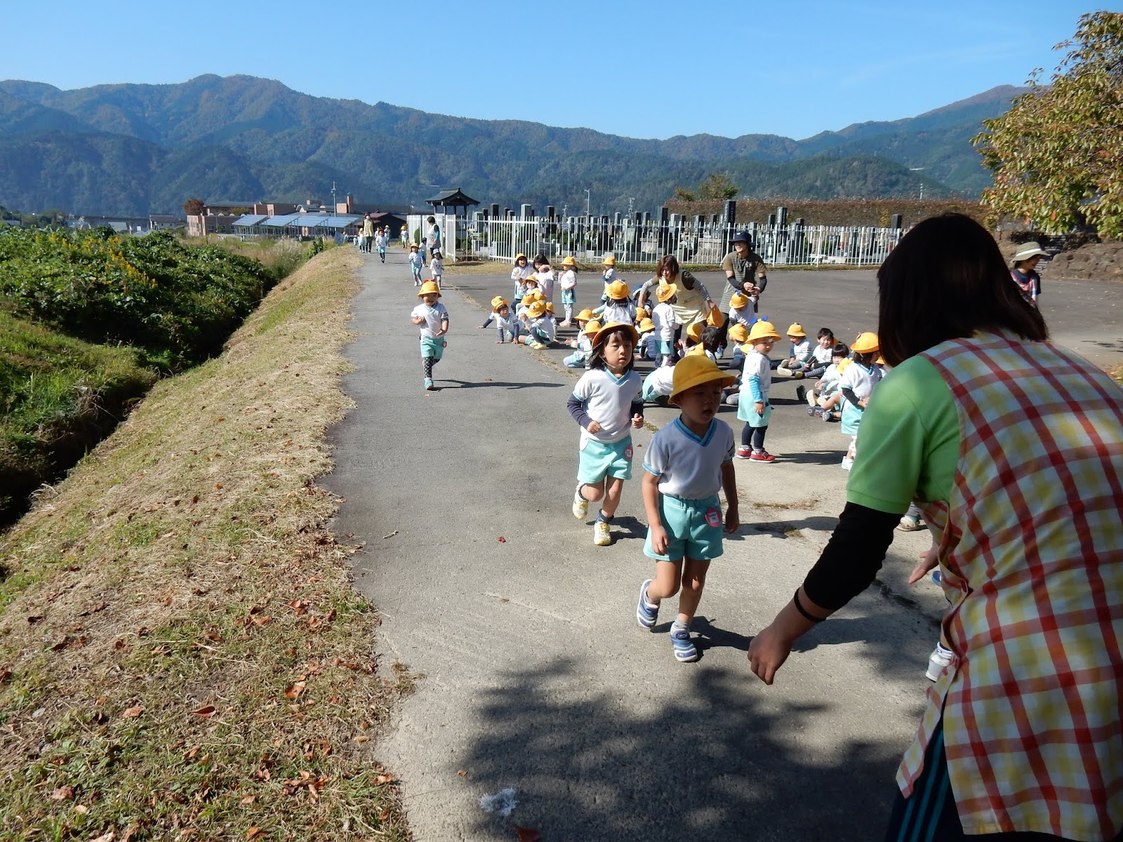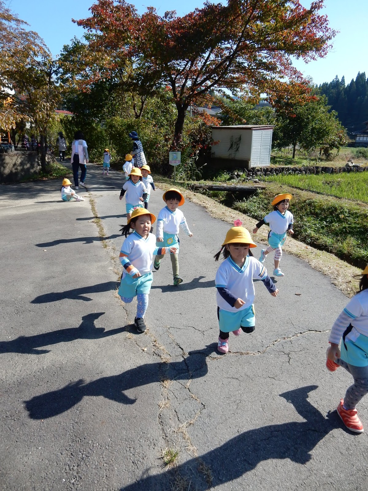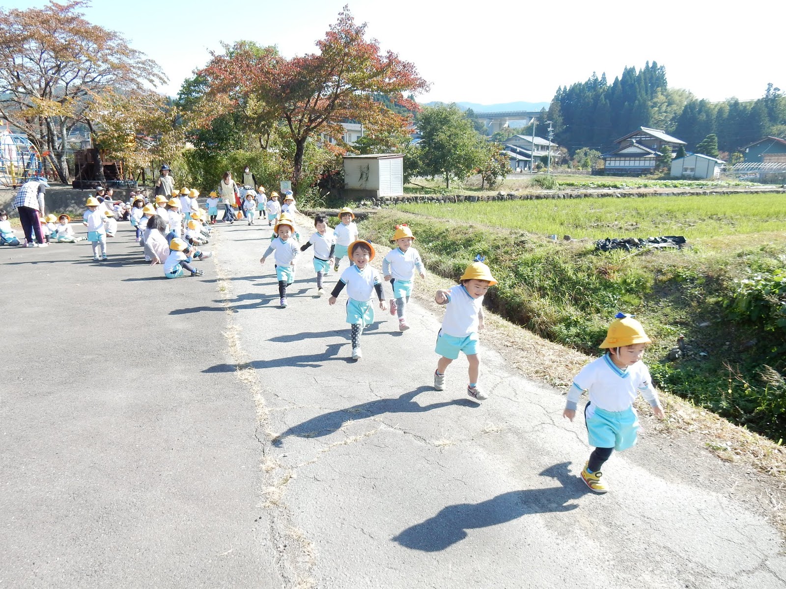 特に、ひまわり組、ゆり組さんは、田んぼのあぜ道を移動してからのスタート!いつもの倍ほどの距離を走ります!