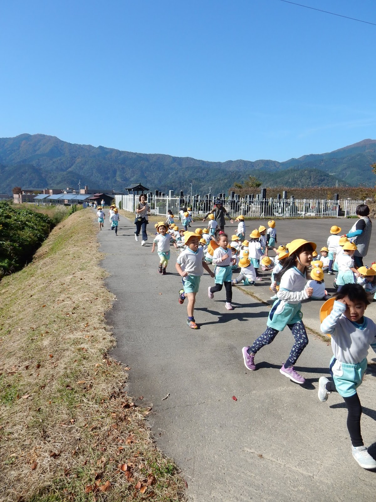 さすがに、バテたような表情で帰ってくる子もいれば、おうえんしてくれている小さい子の声を受けて最後の力を振り絞って全力でゴールする子と様々ですが、みんなが最後まで一生懸命走ることを目標にしています。マラソン大会当日は、ご家族の皆さんにも一緒に走っていただきますので、子ども達に負けないように!!運動しておいてくださいね♪