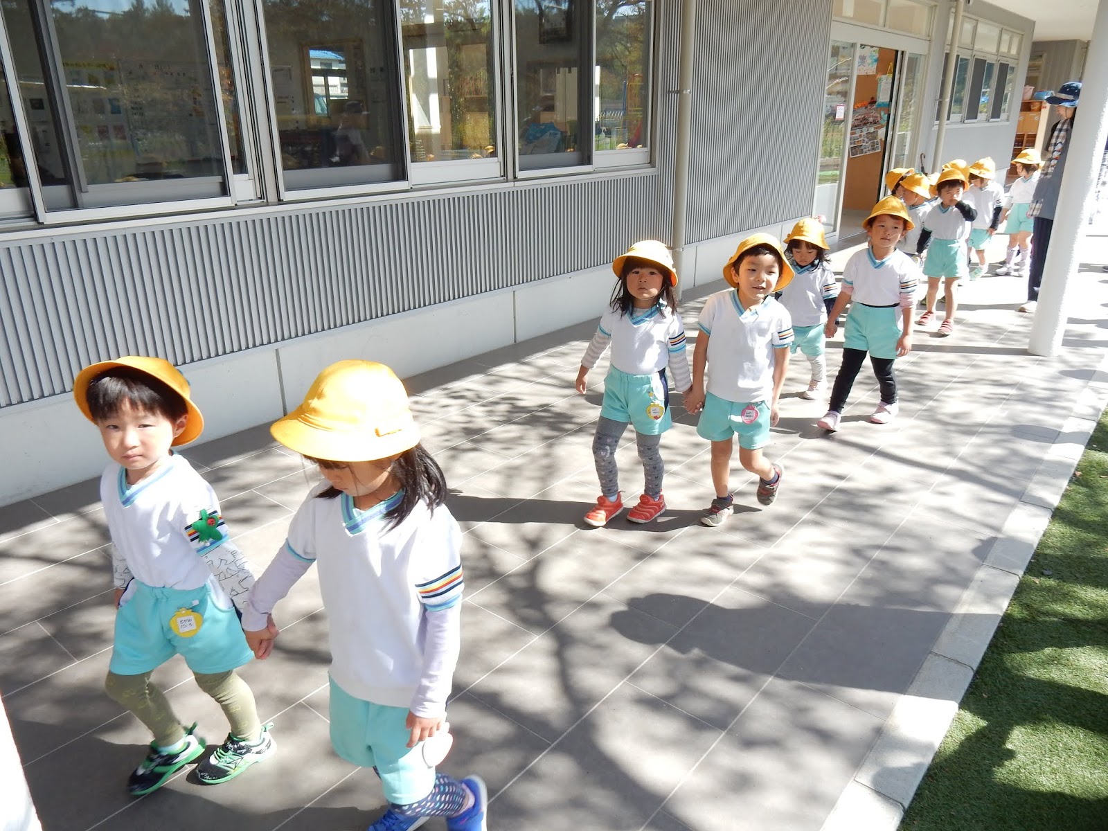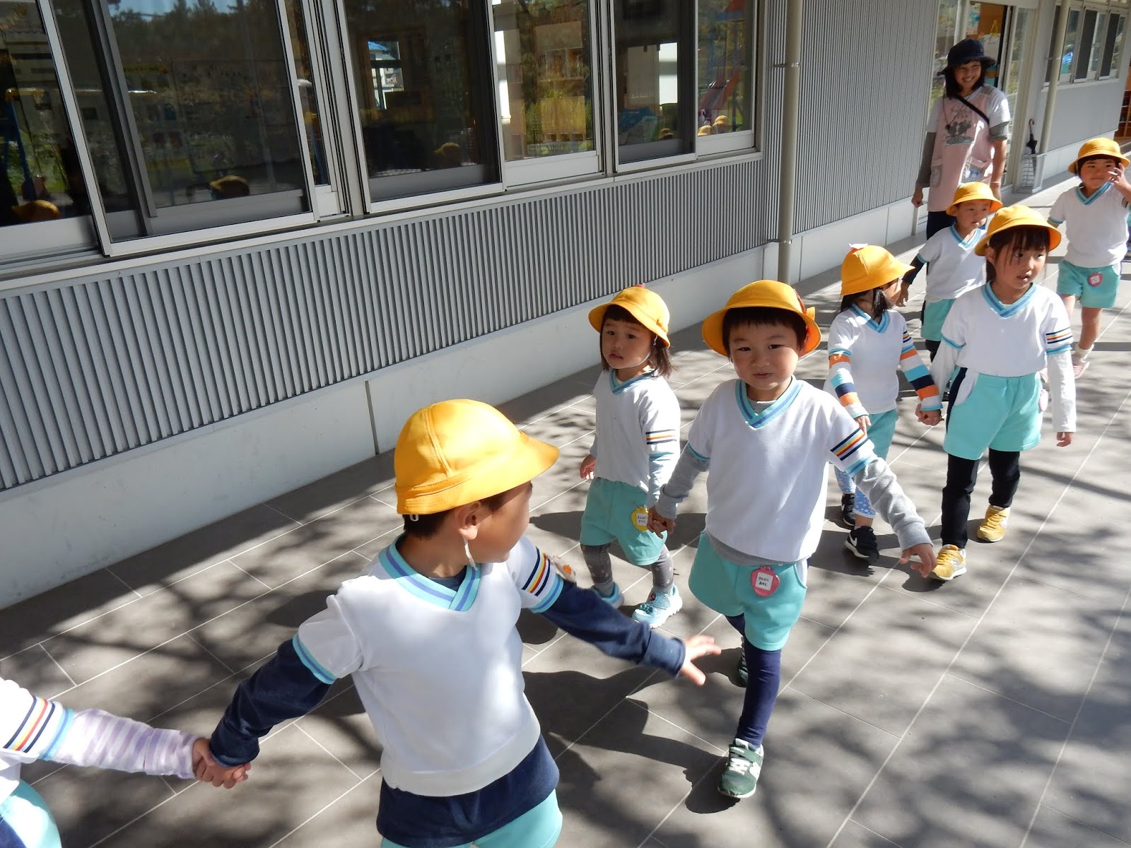 外遊びが気持ちいい時期です。ゆりさんと、たんぽぽさんは一緒にお散歩に出掛けました。小さい子と手をつなぐと、ゆりさんもピシっと気持ちが引き締まったかな?秋の自然をたくさん見つけてこれたかな~。