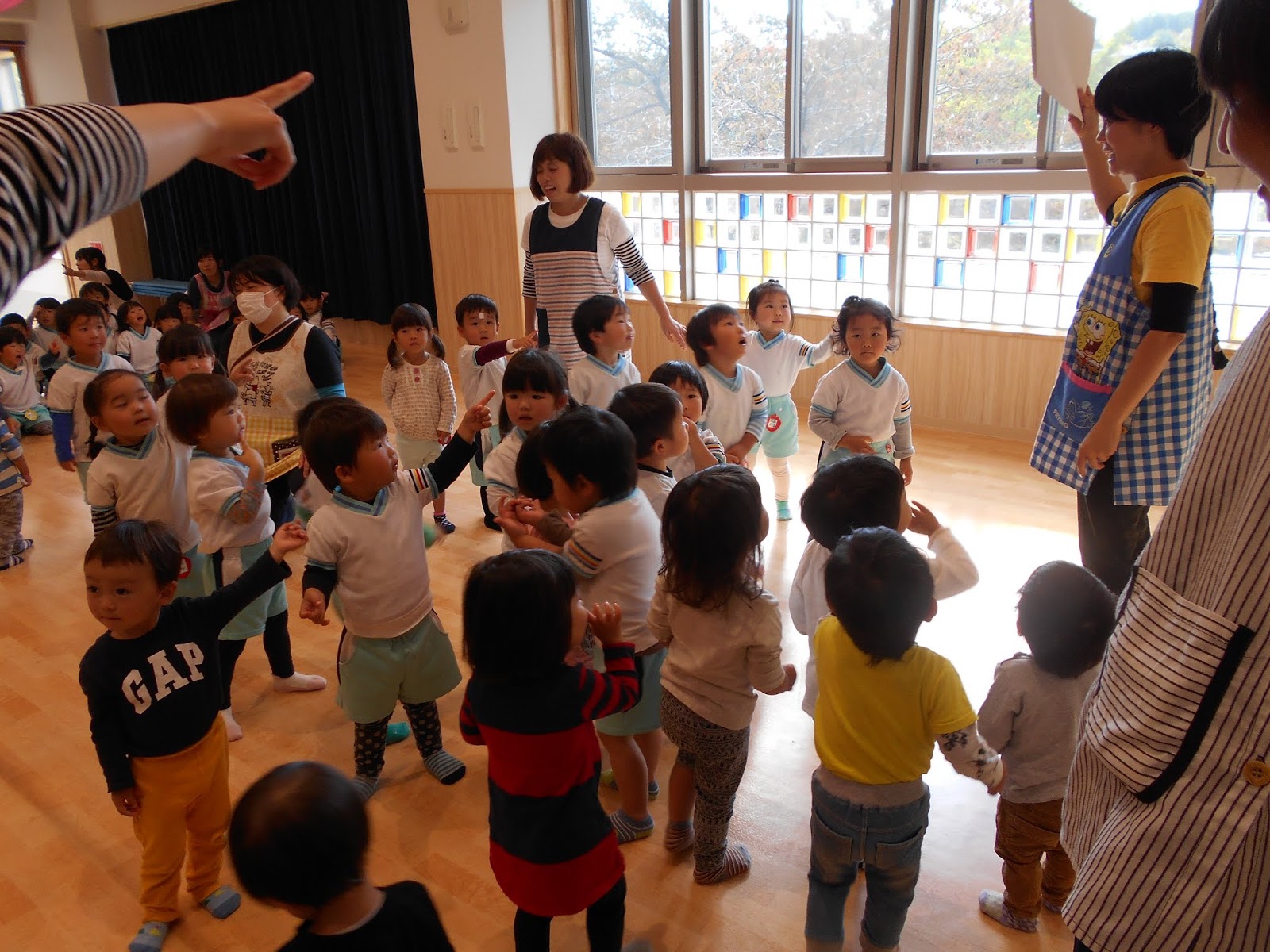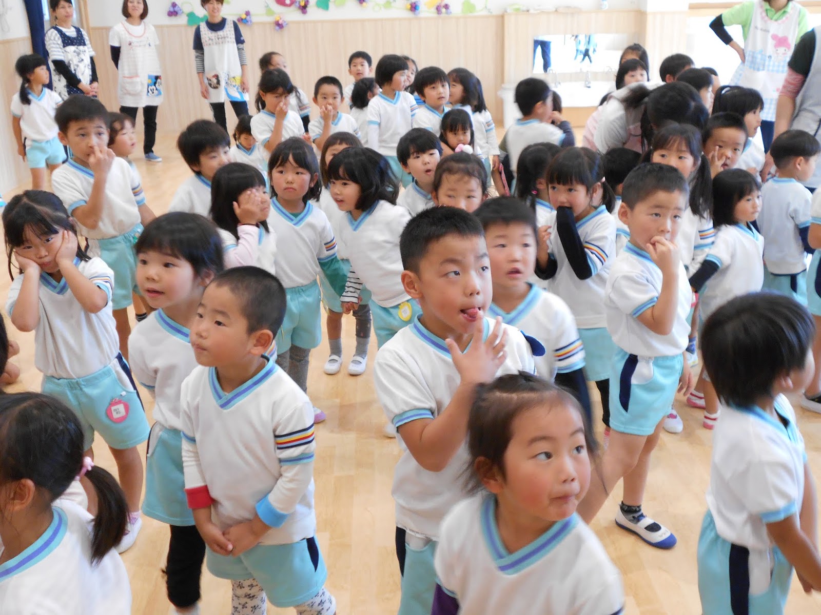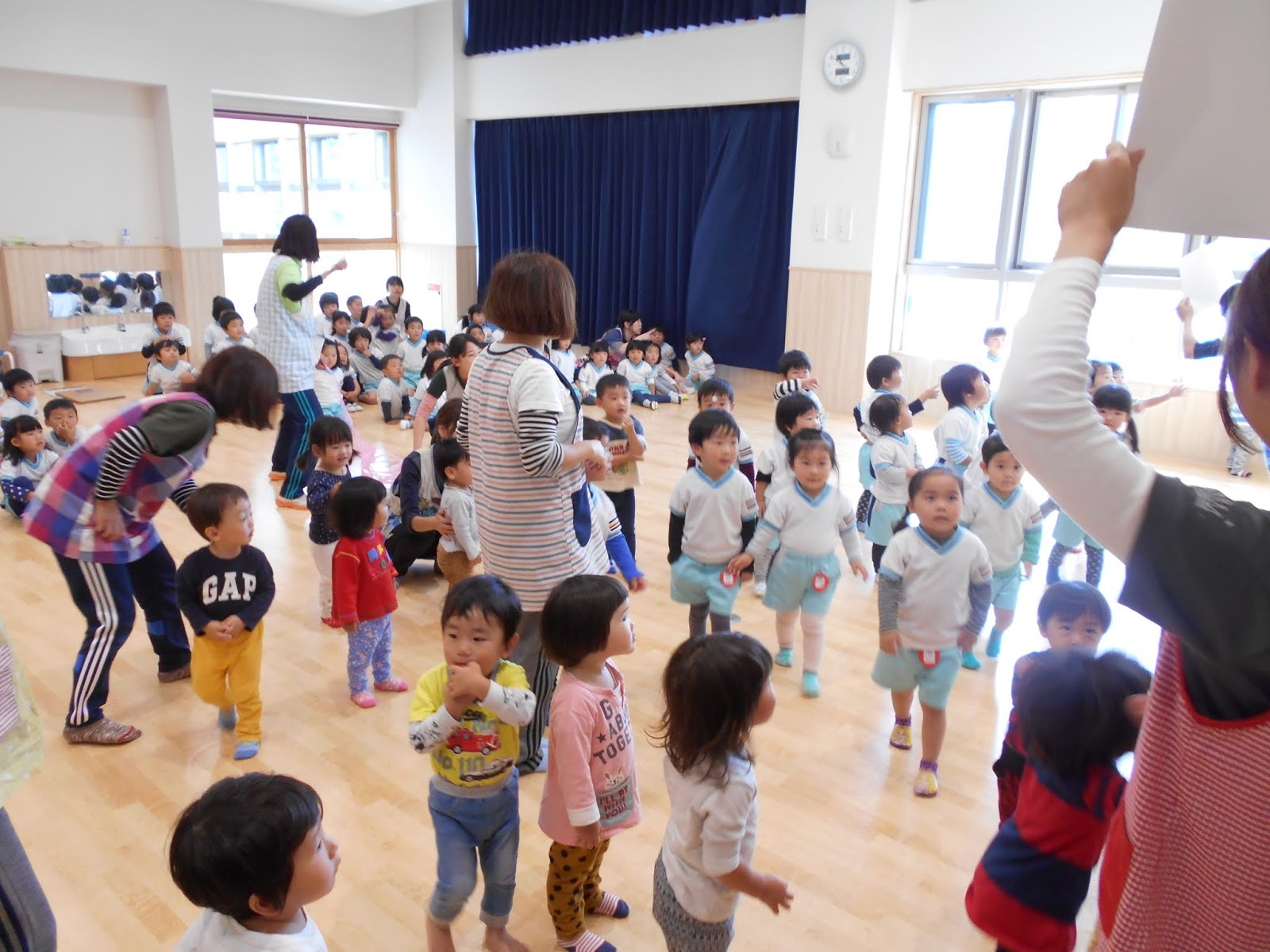 10月の歌”くいしんぼうのゴリラ”を元気に歌ってスタートした今月のお誕生日会。ゴリラに変身して、美味しい食べ物を食べるお歌は、みんな振り付けもバッチリです!