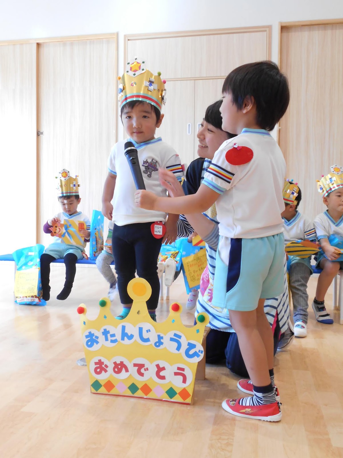 見ていてくれるお友達からの大きな声のお歌のプレゼント。一人ひとりのお名前を呼んでいくので、自分のなまえが呼ばれると、思わずにんまり微笑むお誕生日さん♡みんなのお祝いが、嬉しいですよね!