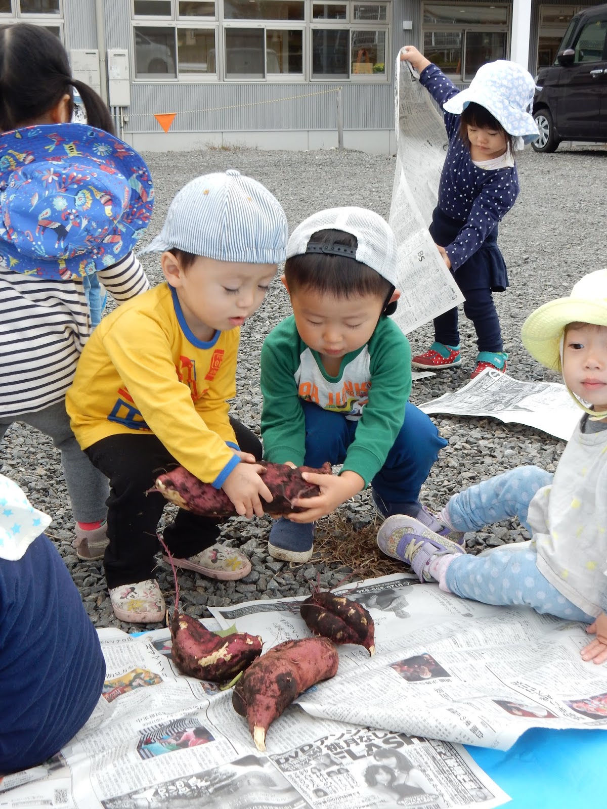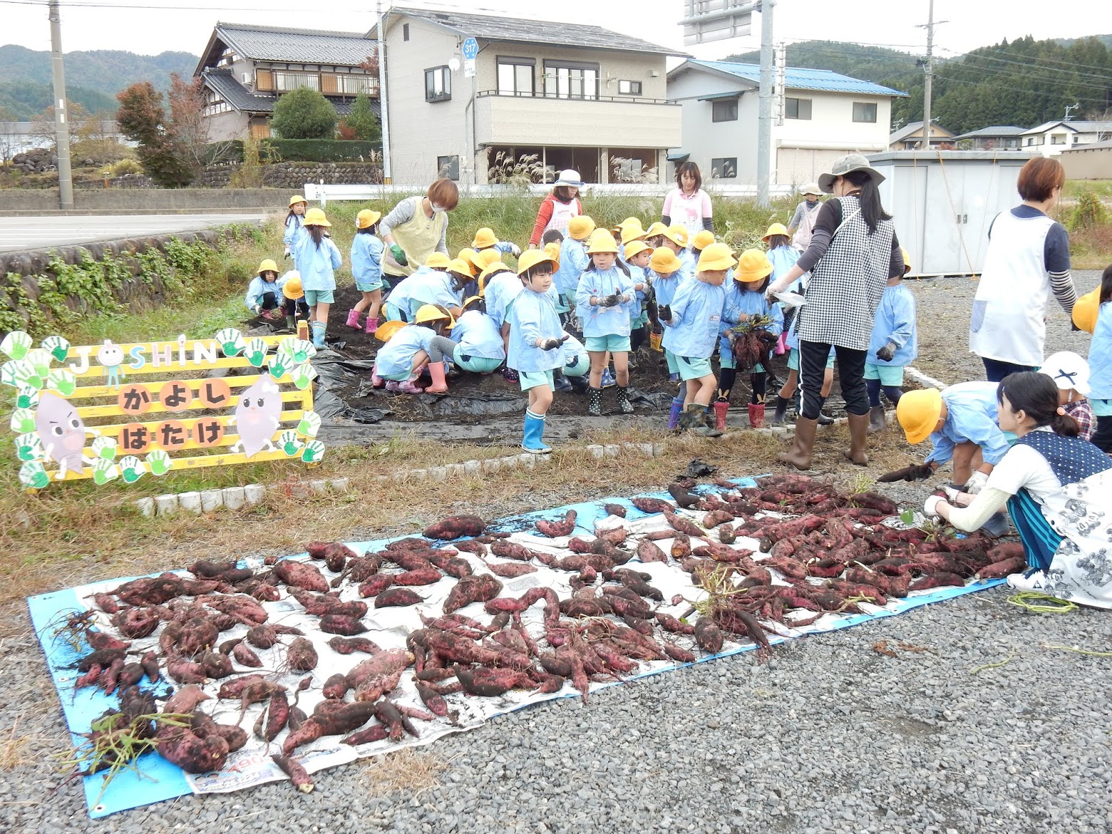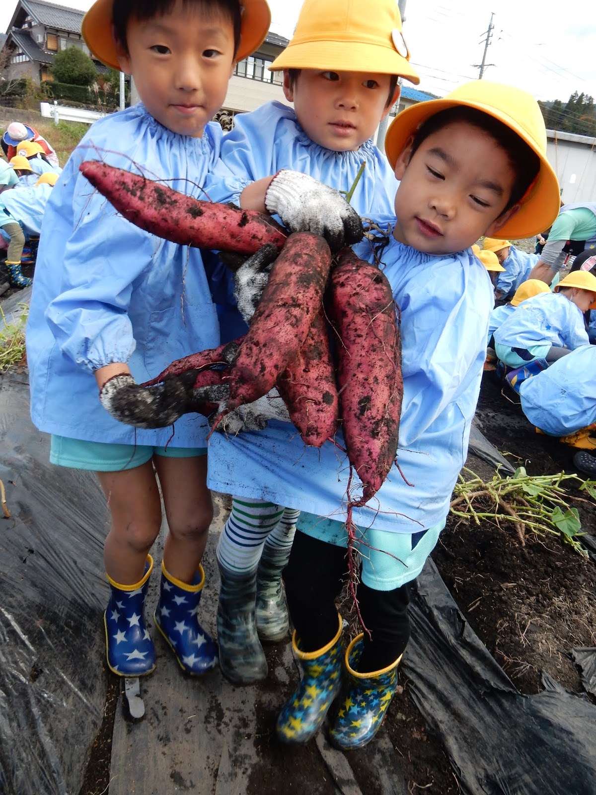 しかし!!子ども達が夢中で芋ほりをしたこと、とっても楽しかったこと、沢山の芋が収穫できたことは、この先の写真を見ていただければ分かってもらえるはずです!