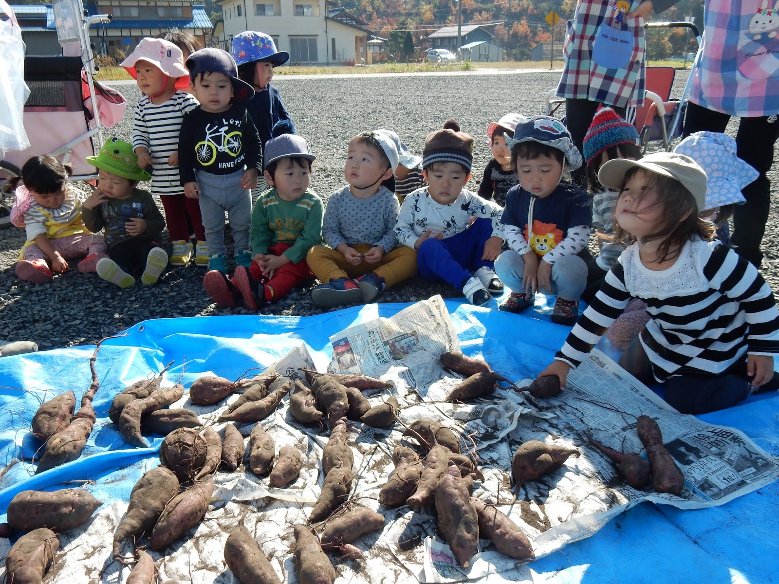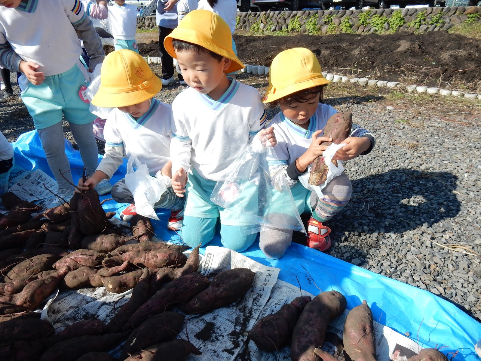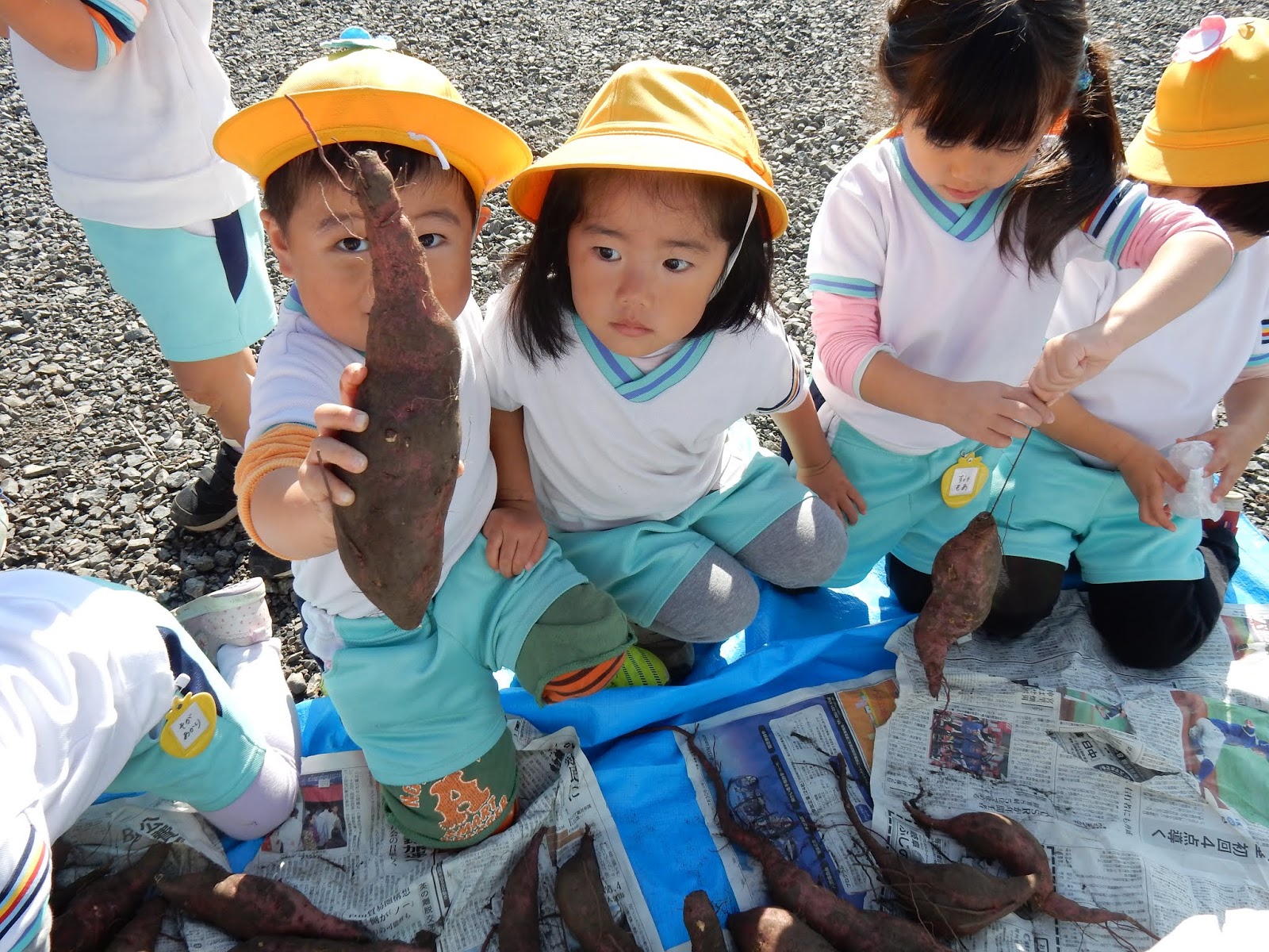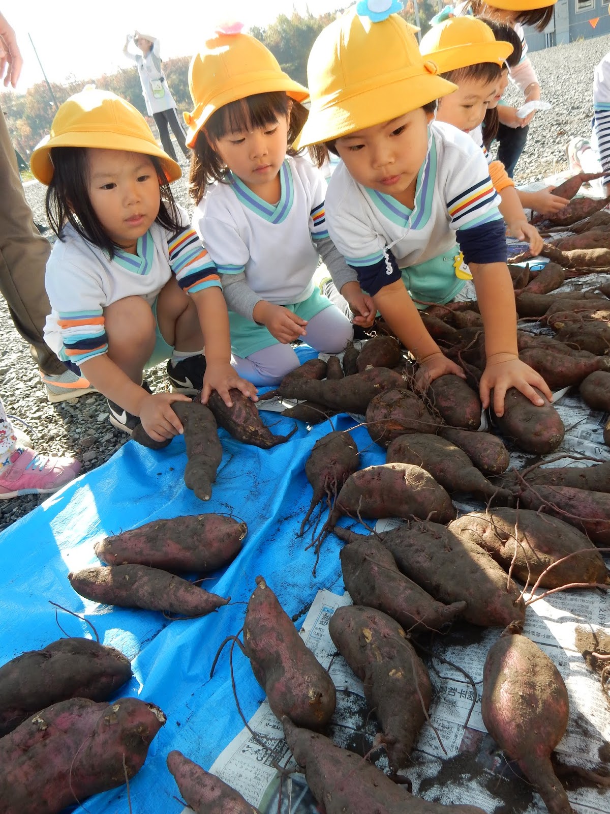 大きいクラスも、小さいクラスも真剣!じーっと並んだお芋とにらめっこ!
