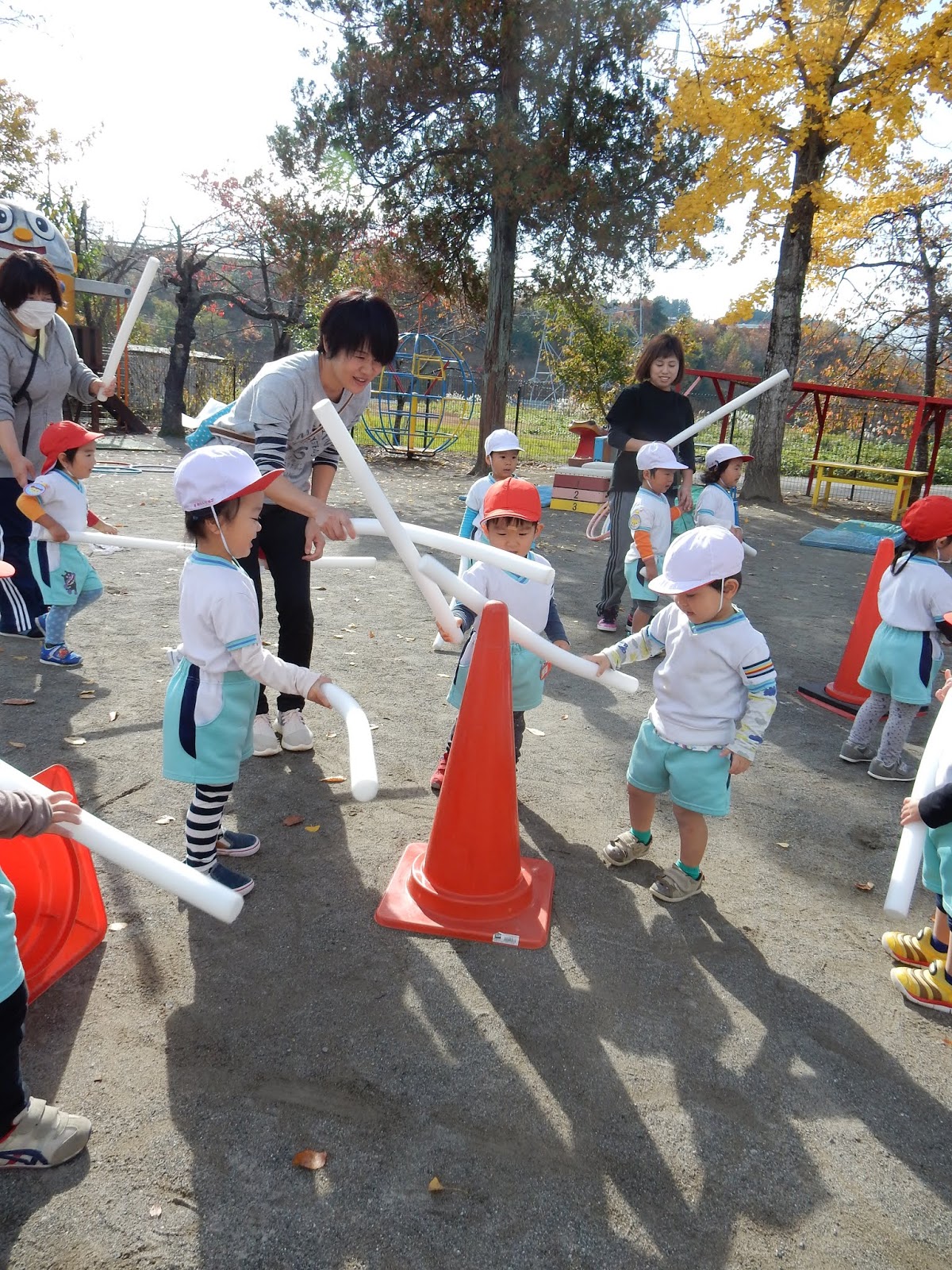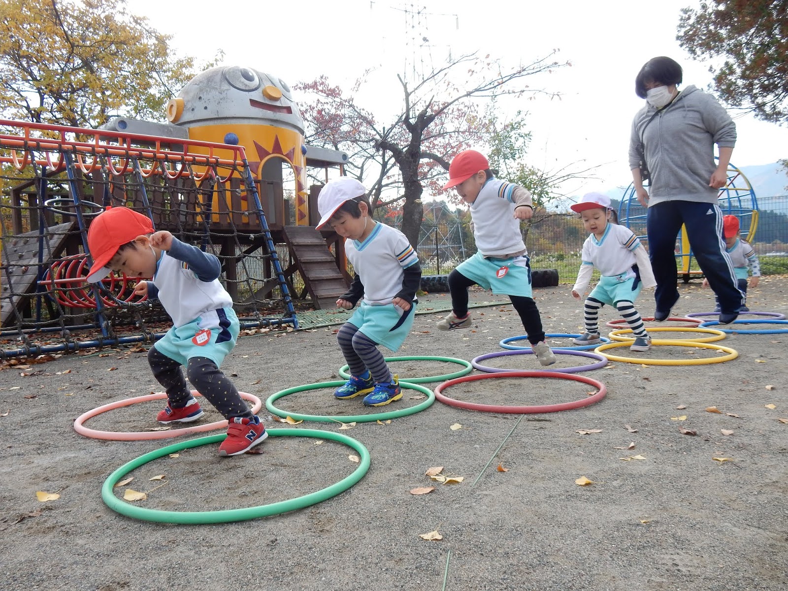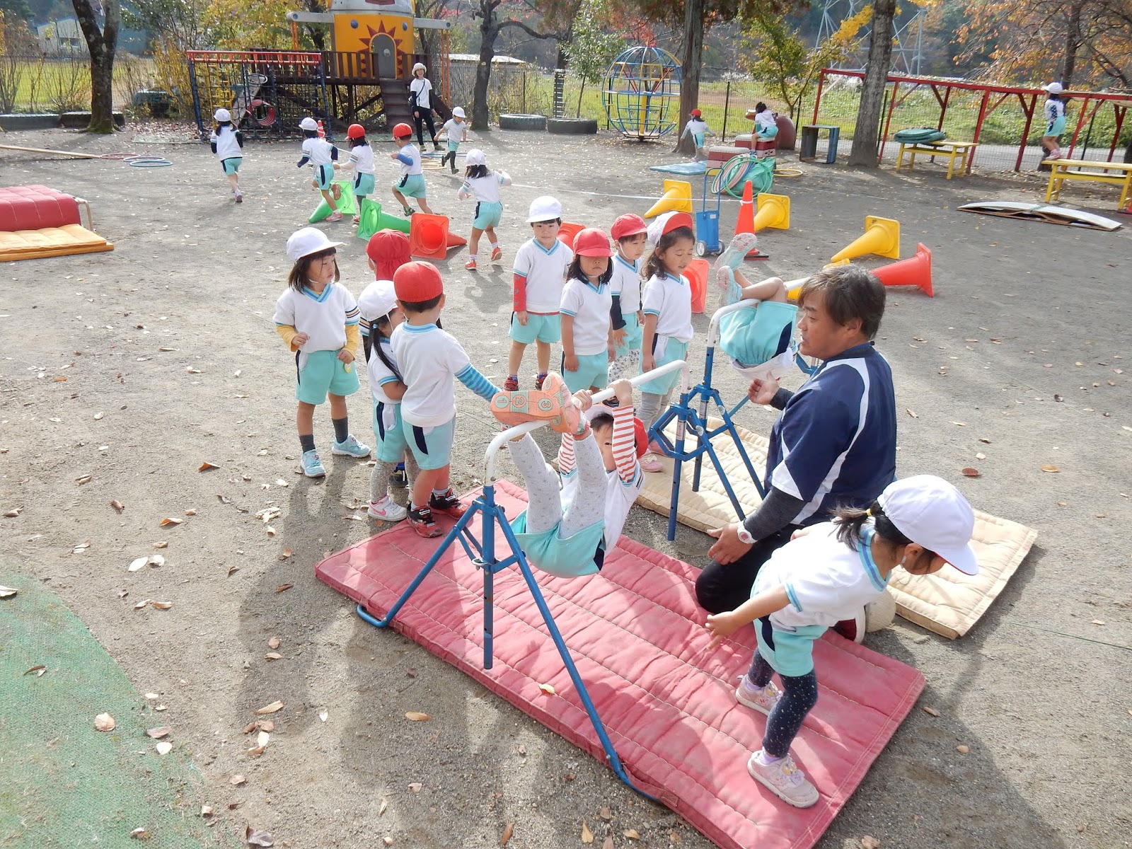 体を動かすと暑いほどの今日はいいお天気になりました!冬は園庭での体操教室ができない可能性が高いので、今日の晴れ間は貴重でしたよ!