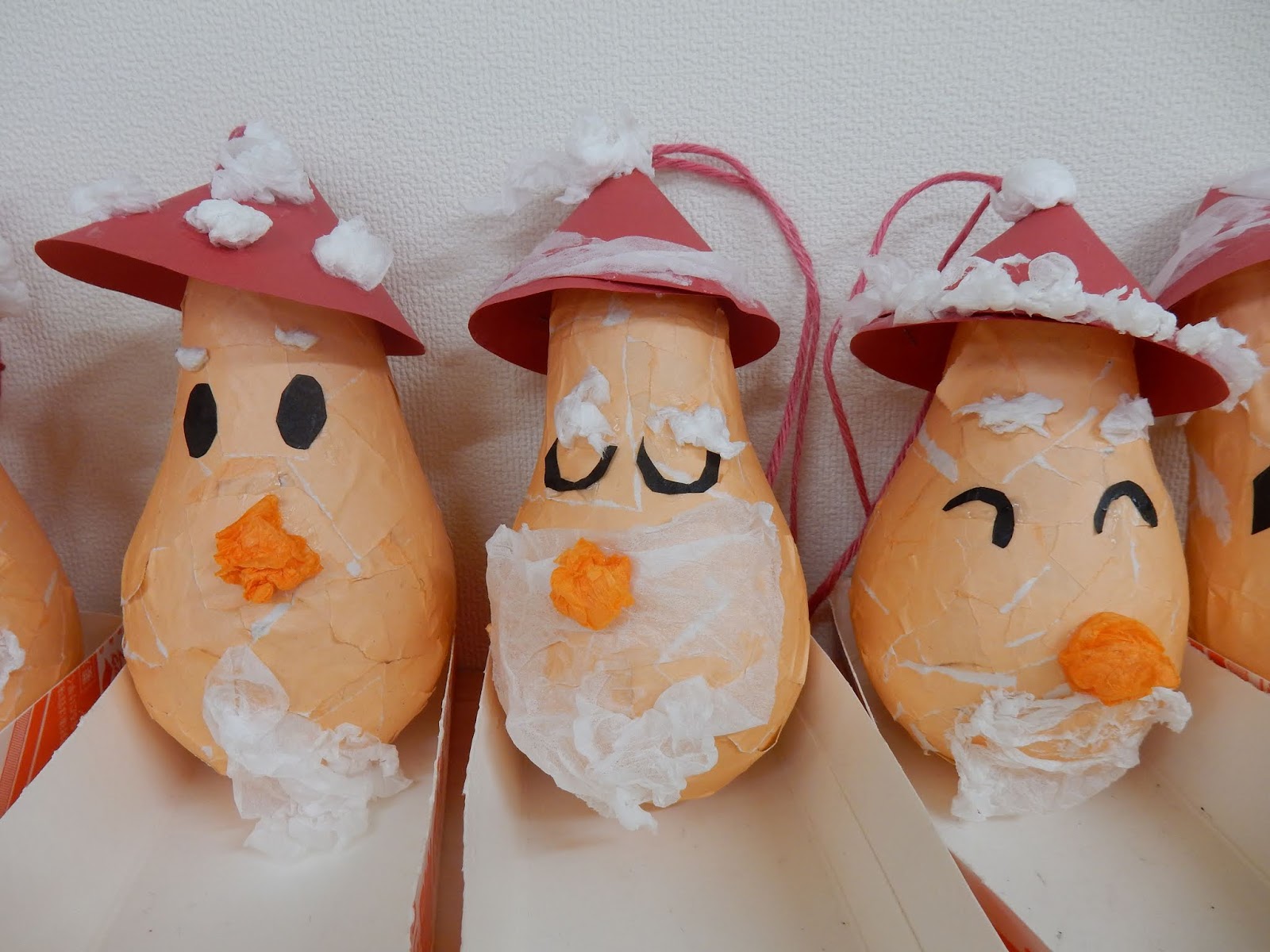 風船に肌色の折り紙を貼りつけ、ひまわりさんが作っていたもの…今日、サンタクロースに変身しました!なんとも可愛らしい出来上がりに、思わず笑顔になります♪