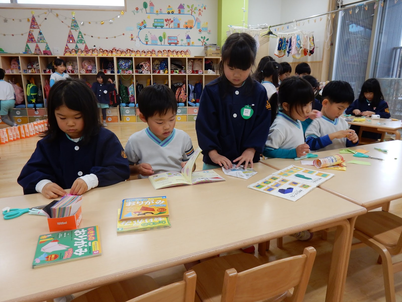 ひまわりさんでは、折り紙の本を見ながら一生懸命折り進める姿がありました。