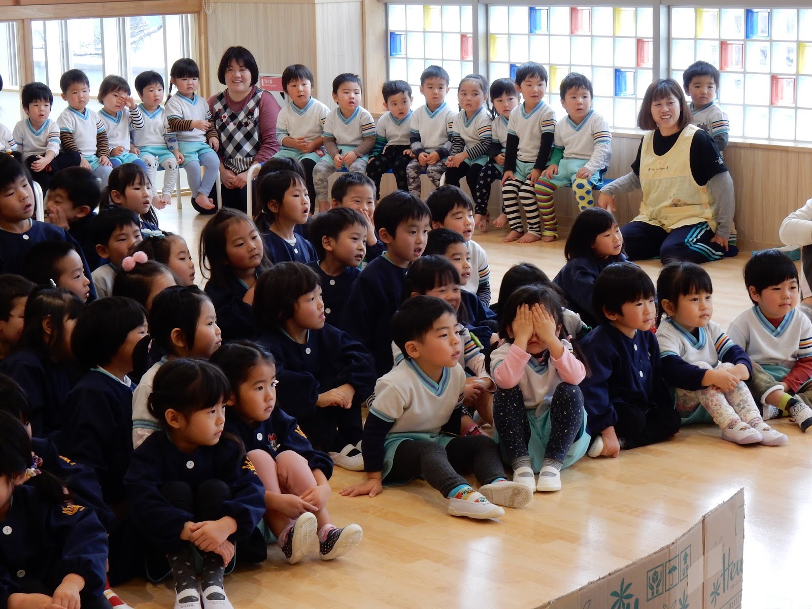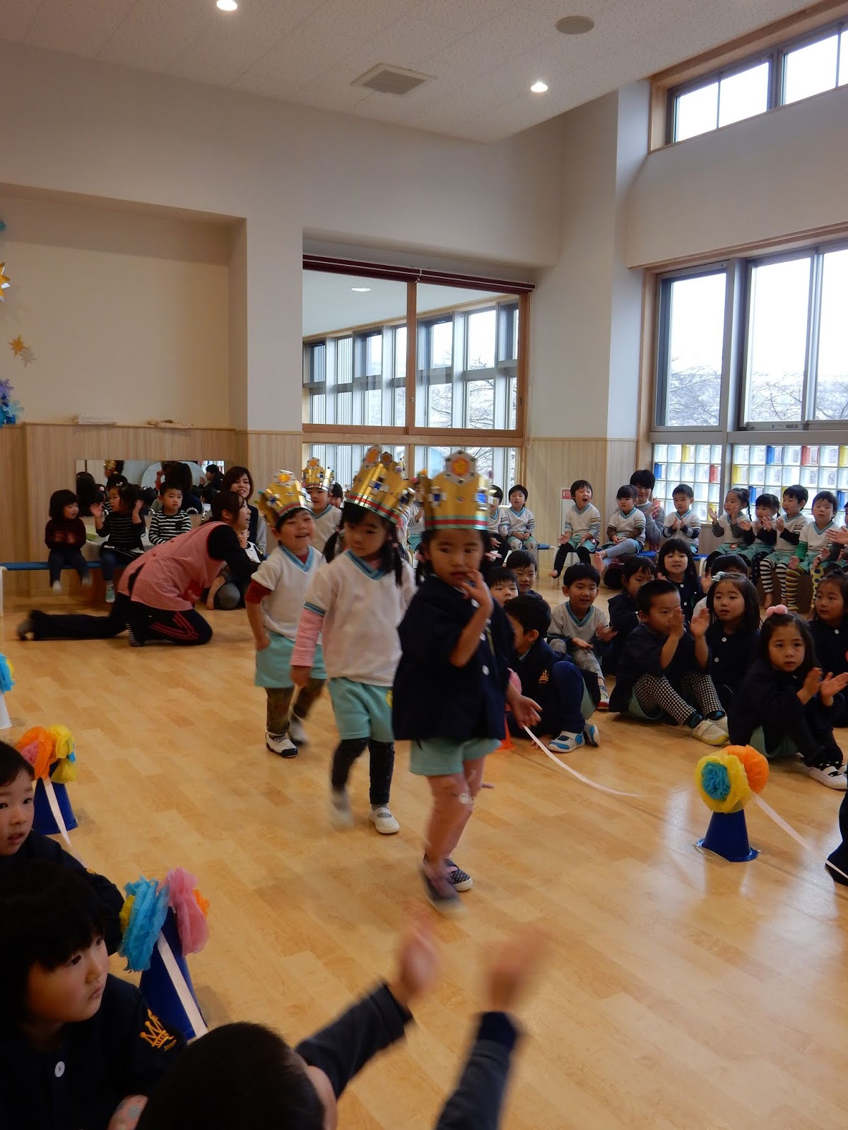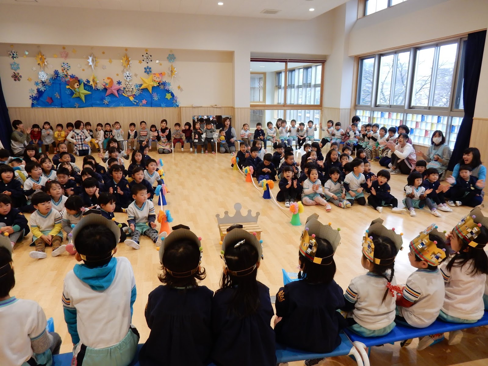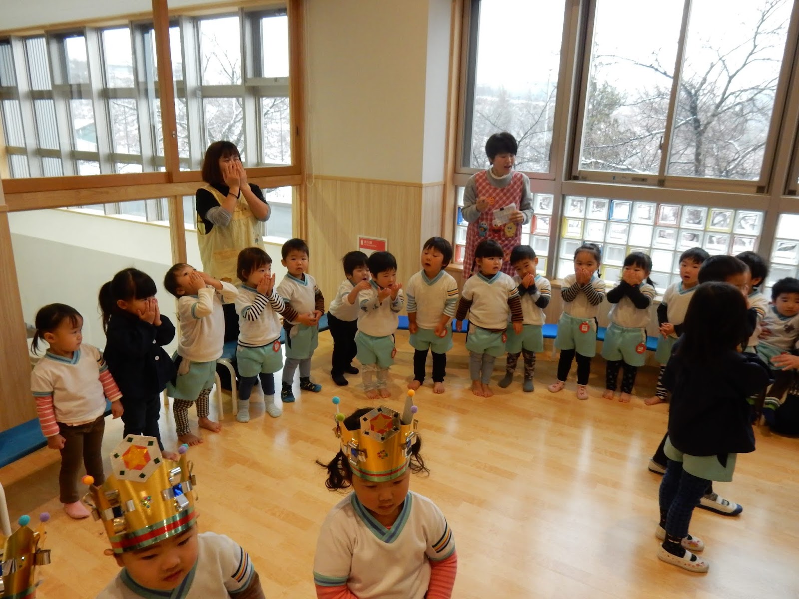 大きいクラスのお友達に手をひかれてひよこさんが入場したり、キラキラの冠に嬉しそうな笑顔を見せてくれたお誕生日のお友達。