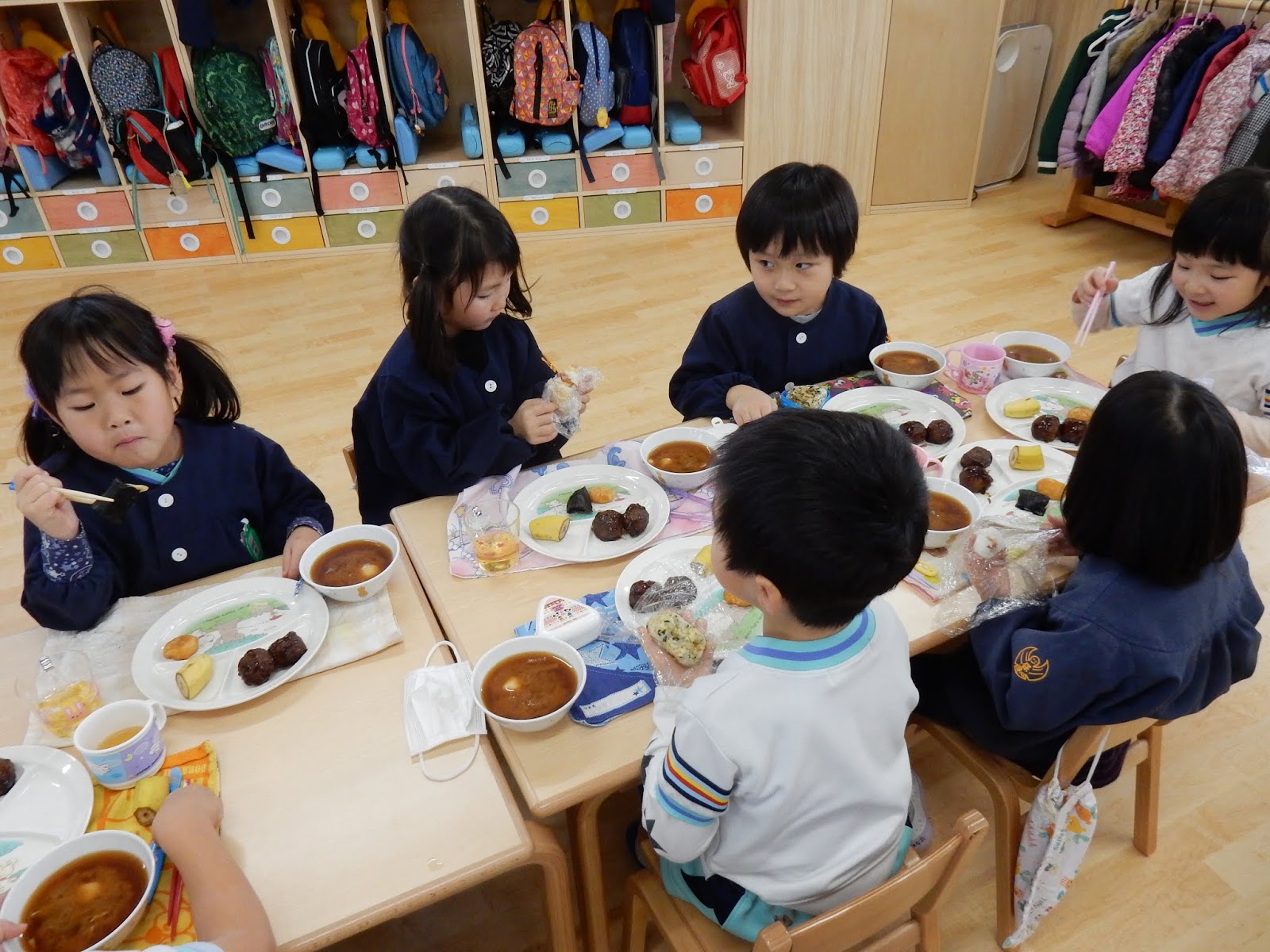 お家から持ってきたおにぎりも、みんなで見せ合いっこを楽しんで、おもちも行列を作っておかわりをして食べました♪とっても楽しい1日になりましたよ!