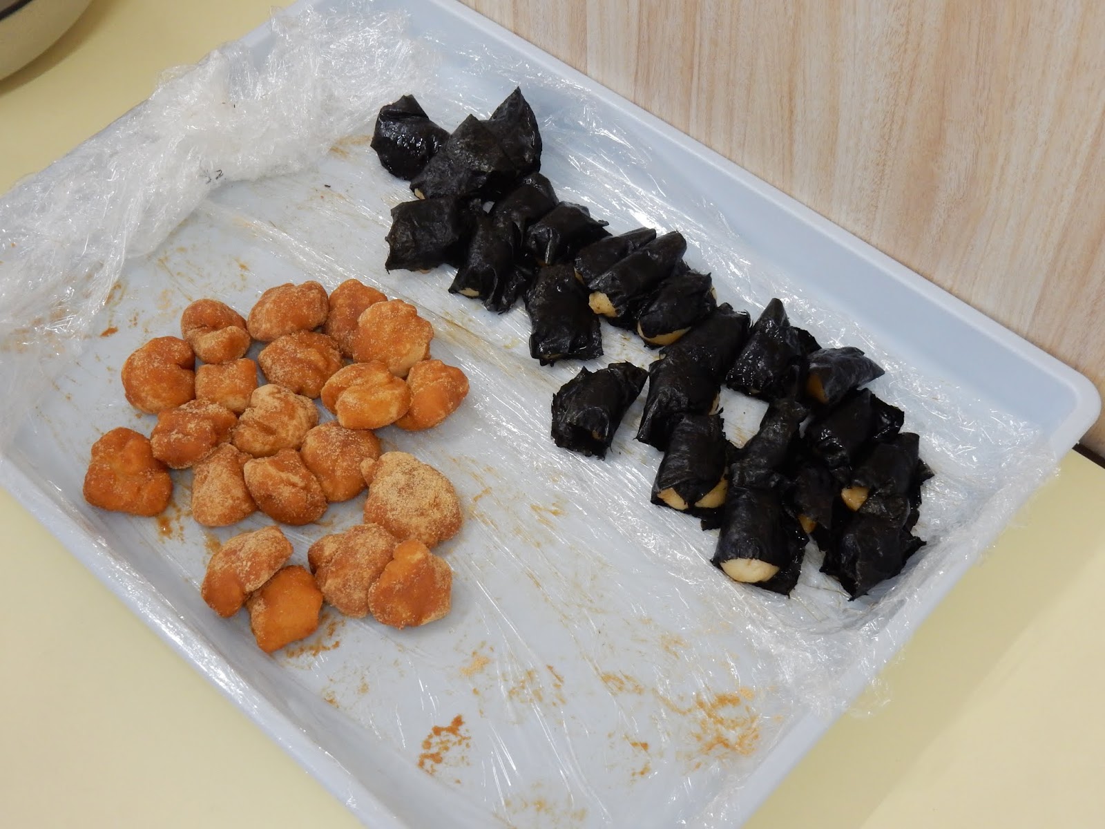 給食室で、きなこと、しょうゆをつけてもらい、頂きました!おかわりもたっぷり届きましたよ!