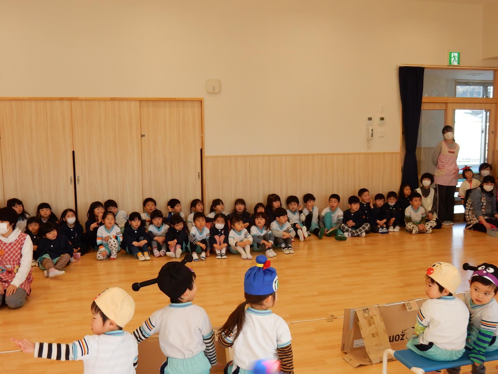 園庭のコンディションが悪いこの時期は、なかなか大きいクラスと小さいクラスが一緒に活動したり、遊んだりする機会がないため、他のクラスのお友達のやっている事にみんな興味津々!