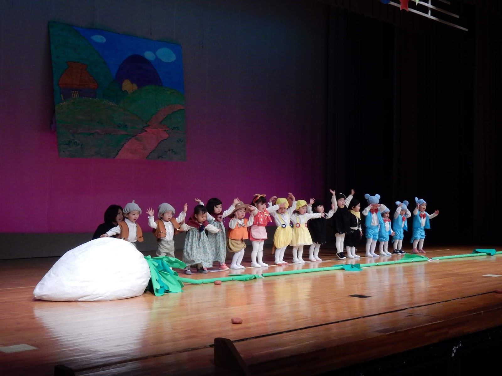 インフルエンザが流行する時期、全員で揃ってステージに立つことができなかったクラスもあり、残念でしたが、この日を迎えるまでに頑張ってきた子どもたちです。その積み重ねはステージに立てた子も、立てなかった子も同じです。みんなに大きな拍手と、“頑張ったね!”という言葉をかけたいですね!きっと、この発表会までの取り組みは、それぞれにとって大きな思い出となり、良い経験になったことと思います。1年間の成長をご家族の皆さんにも感じていただけたでしょうか。楽しく見ていただけていれば嬉しいです。