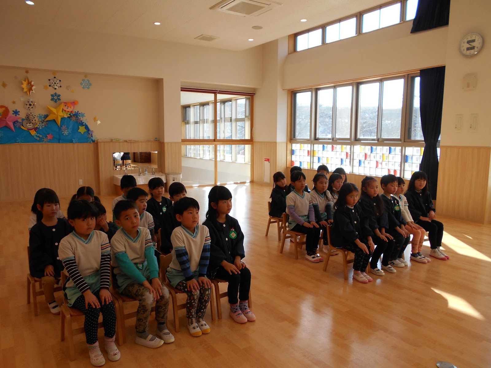 ひまわりさんは、次は「卒園式」という大きなしめくくりの行事が待っています。心が大きくなって成長していくのは嬉しいですが、卒園となると、やっぱり淋しいですね・・・ 残りの園生活、いっぱいいっぱい思い出作ろうね!ピシッとした姿勢、さすがひまわりさんです。