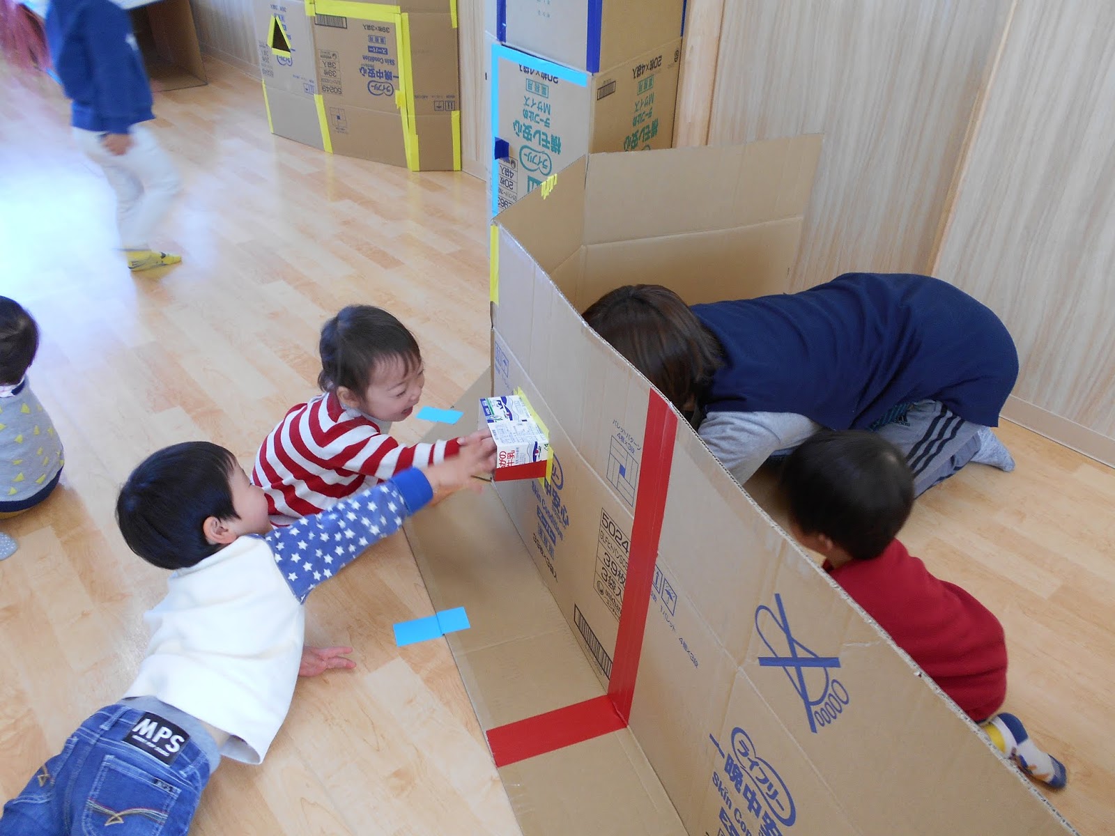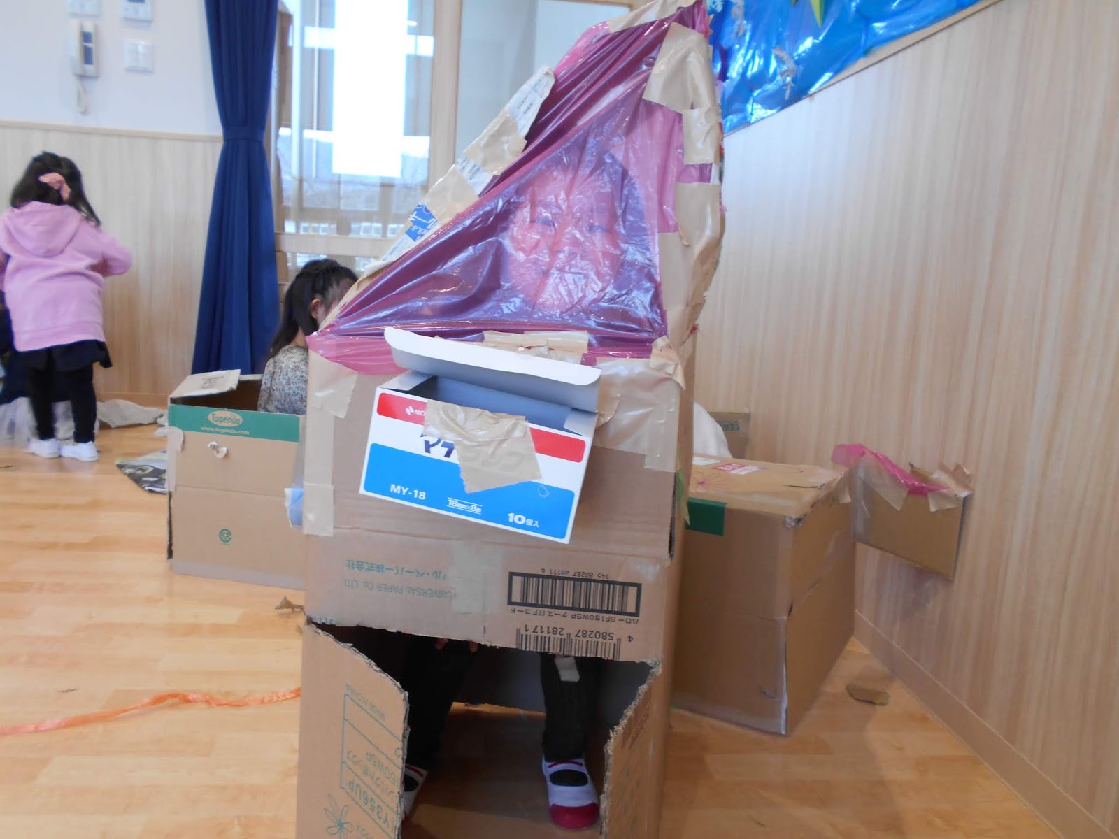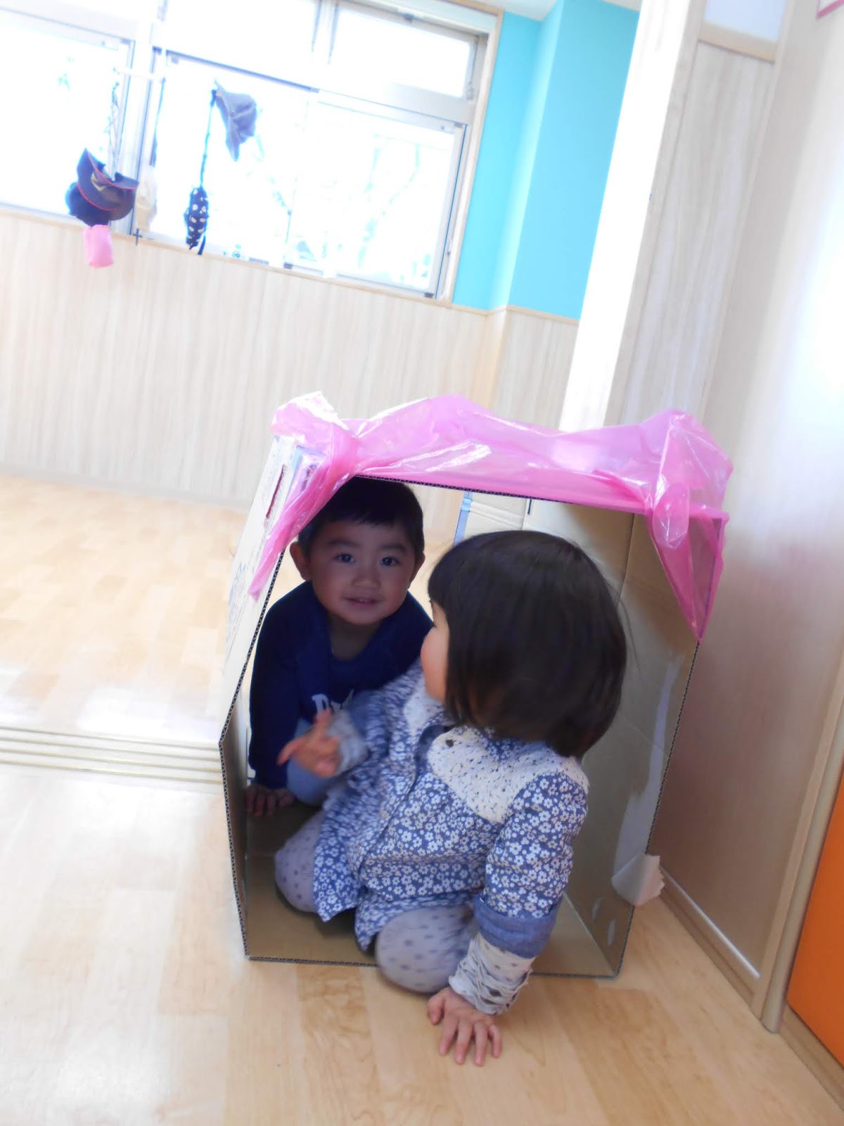 こんなひみつ基地ができたよ~!ひまわりさんになると、いろいろ想像しながらいろんな形の基地を作ったりどんどん遊びの発想も広がり楽しくなってきますね。
