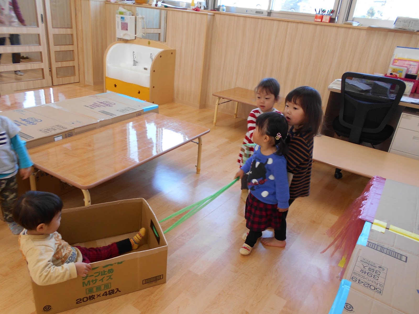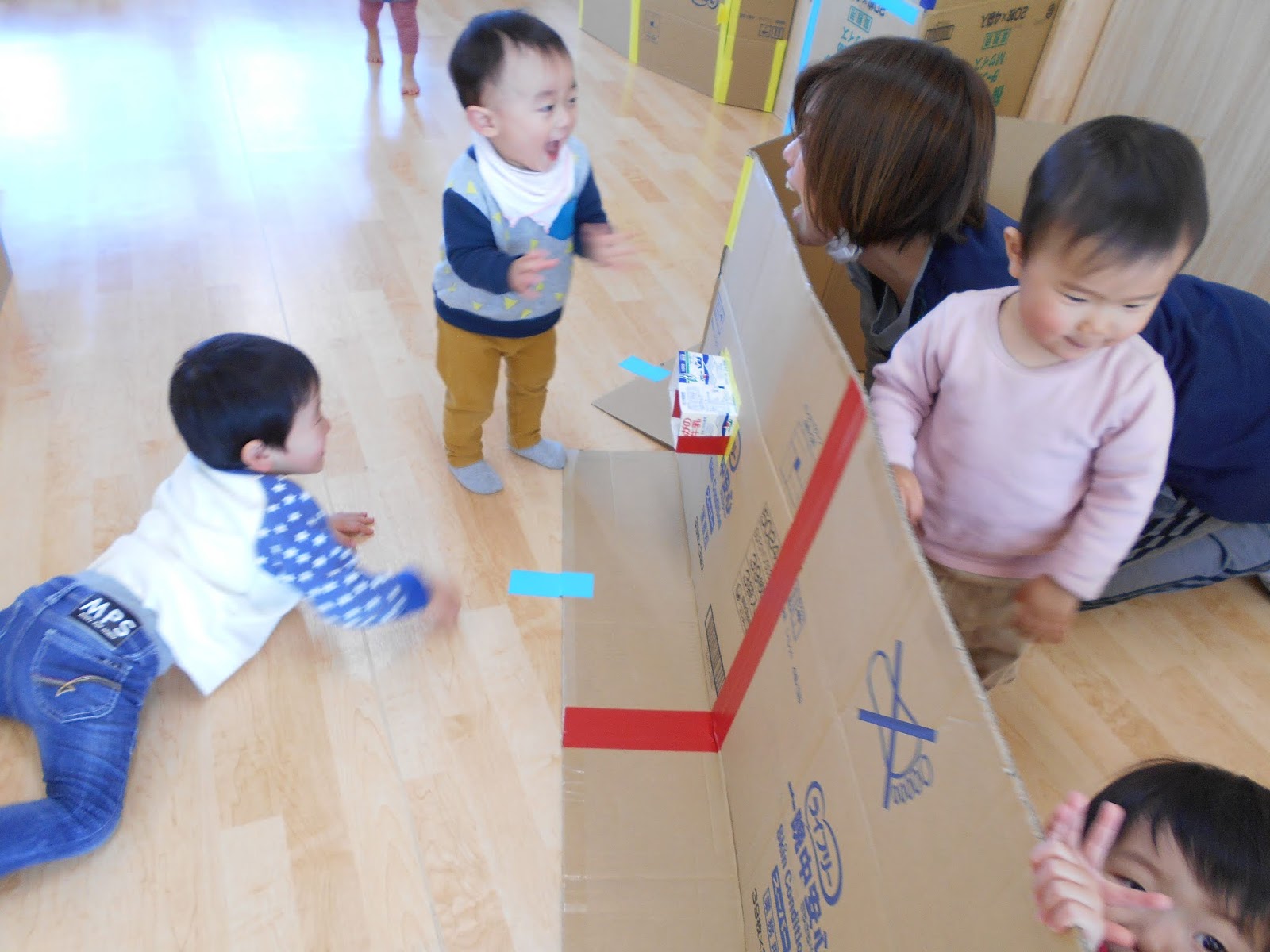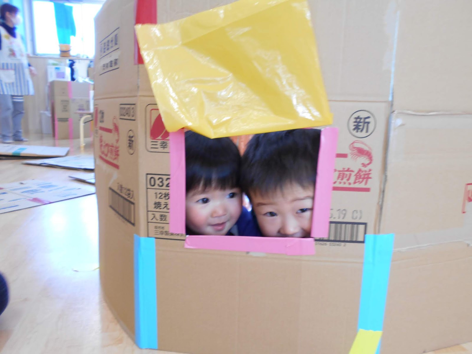 こんなひみつ基地ができたよ~!ひまわりさんになると、いろいろ想像しながらいろんな形の基地を作ったりどんどん遊びの発想も広がり楽しくなってきますね。