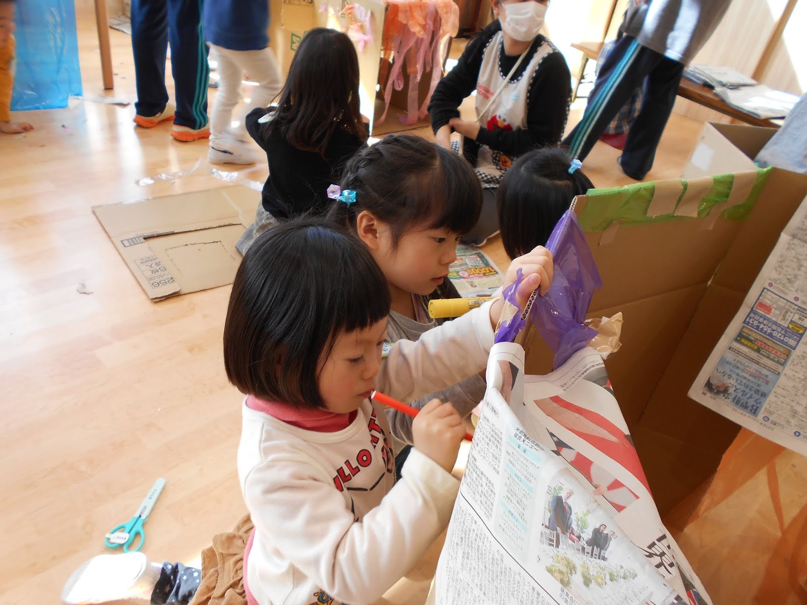 お話が終わって、みんなでひみつ基地をつくるよ~エイエイオー!