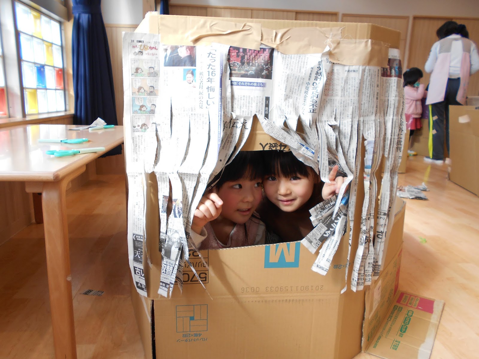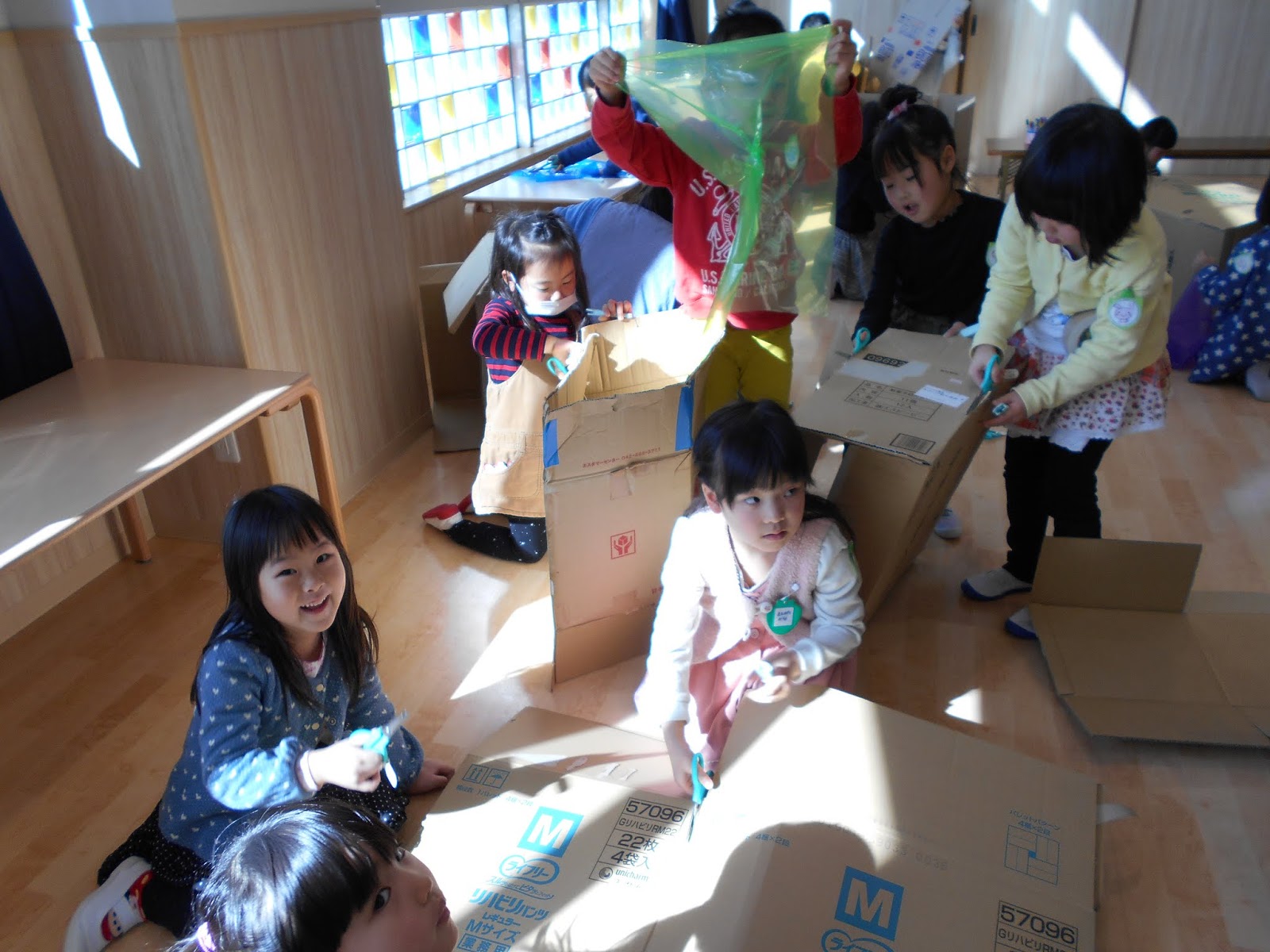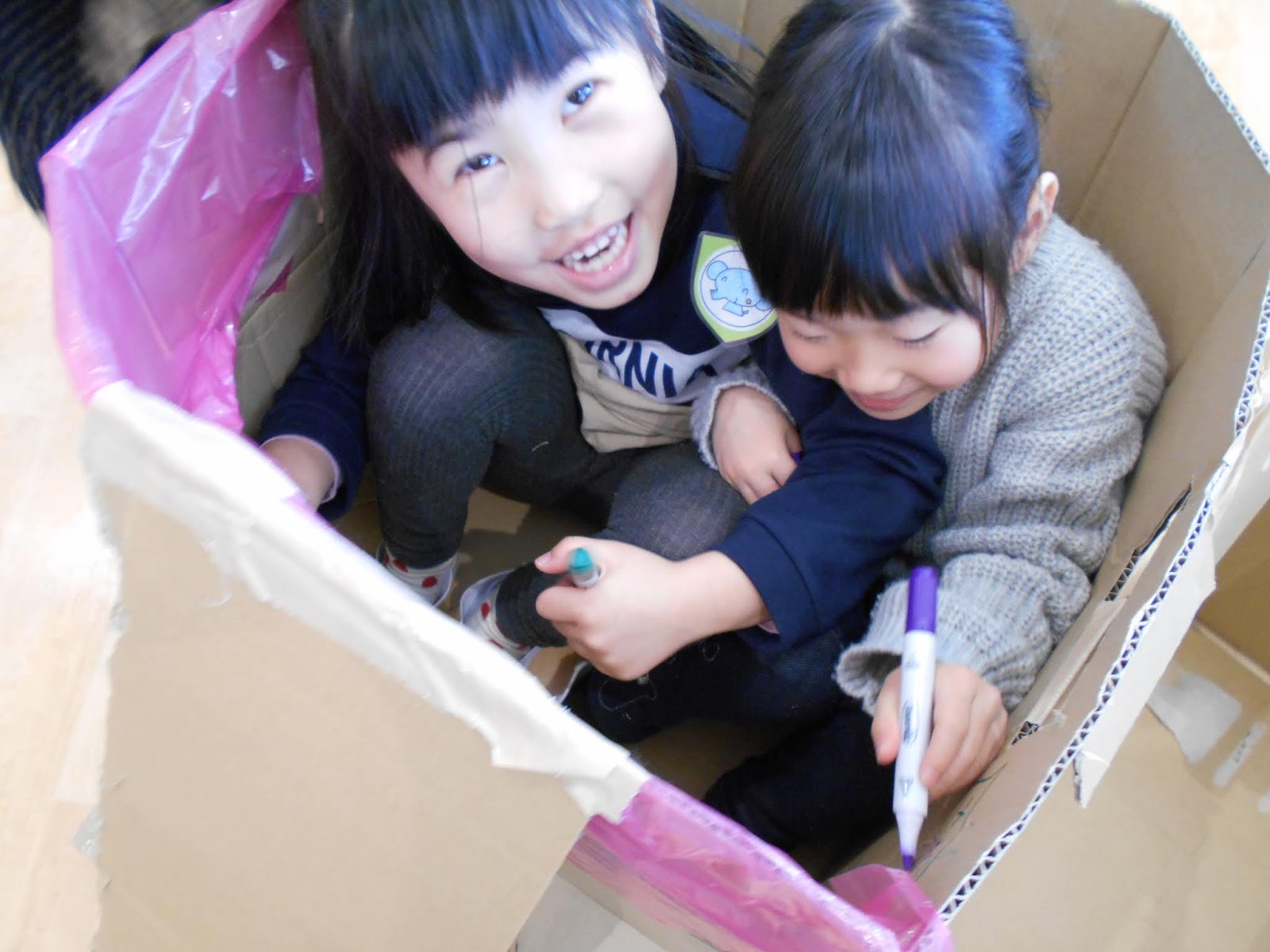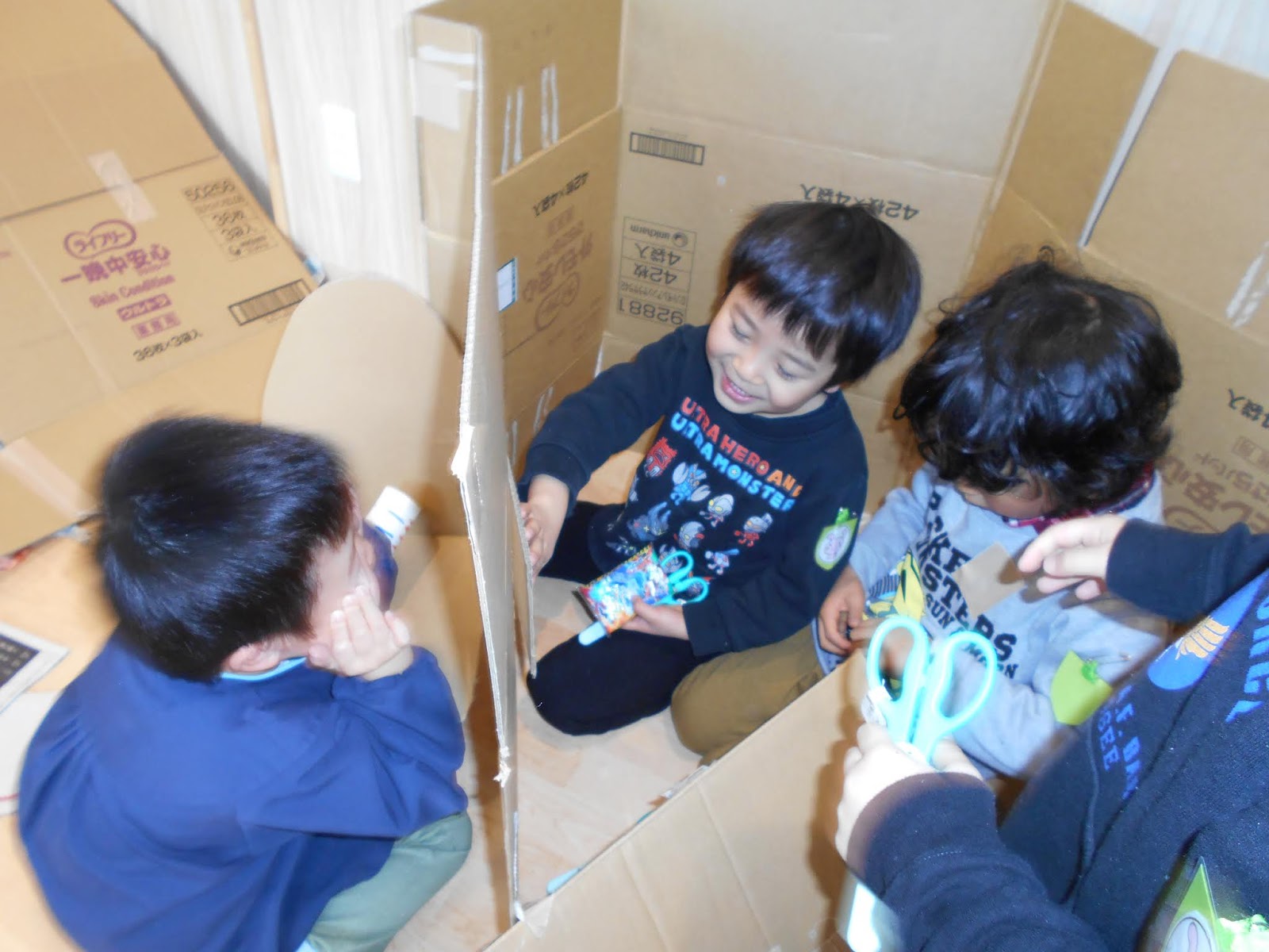 たくさんのダンボールを使って、どんな基地ができるのか楽しみ~!