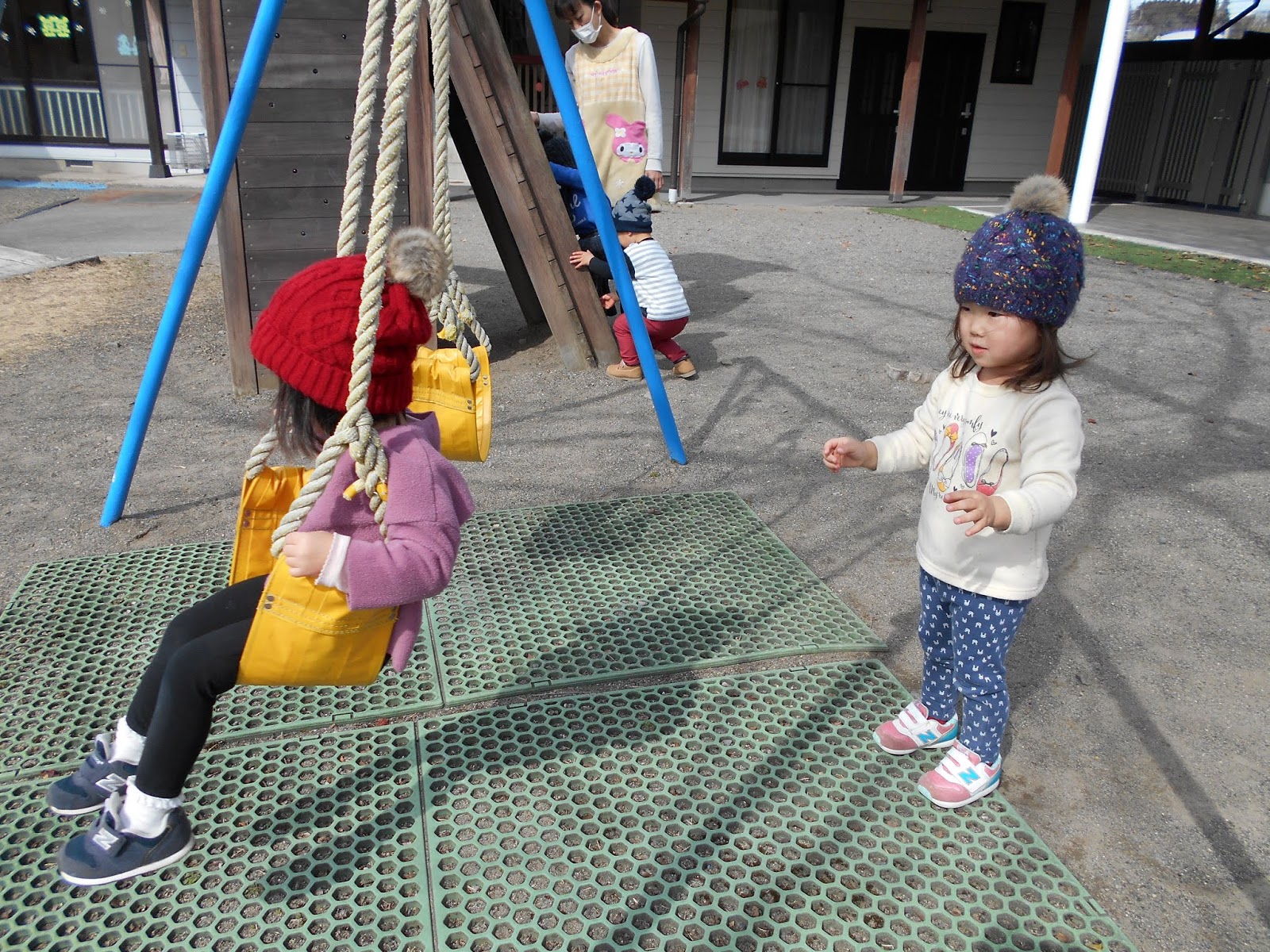 「ねぇねぇ、ブランコ押してあげようかぁ」