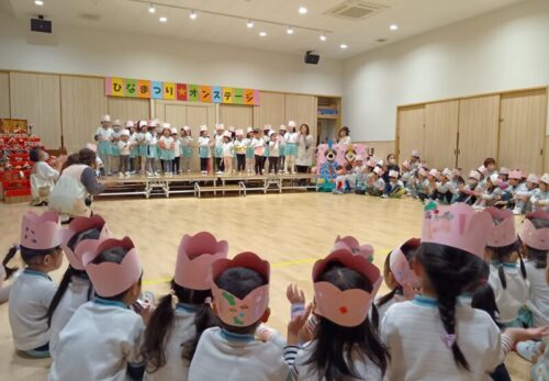 ひよこさんと、すみれさんでちょっぴり緊張しちゃったのかな・・・遊ぶときはあんなに元気いっぱいの声が聞こえるのに、いつもと違う場面にみんな、固まったようです。