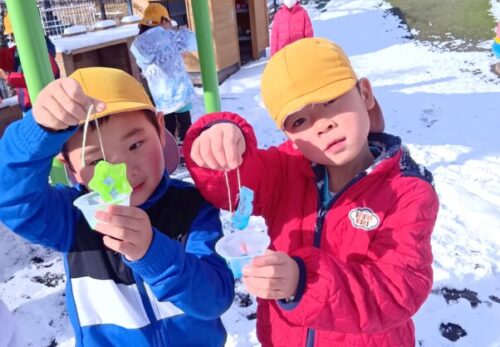 お外でみんなでお給食食べよう!! と声をかけると、”やったー!” と大喜び!!