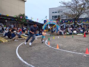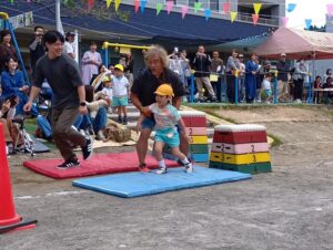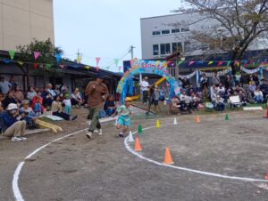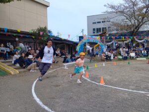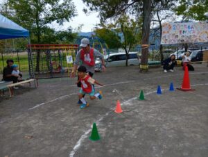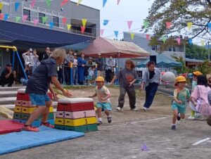 ひまわり組さんの親子競技は、障害物リレー!!!