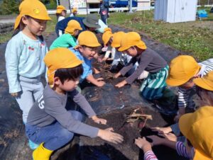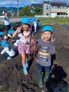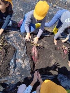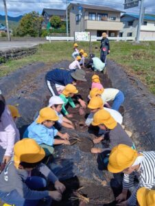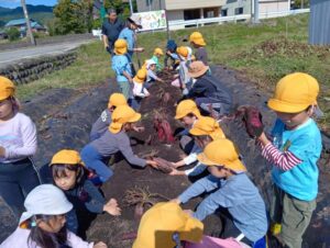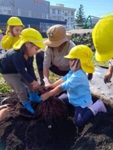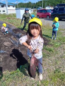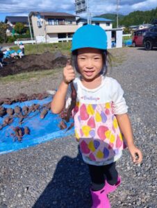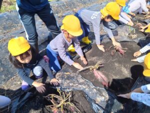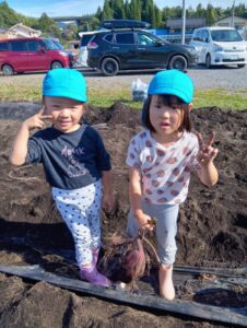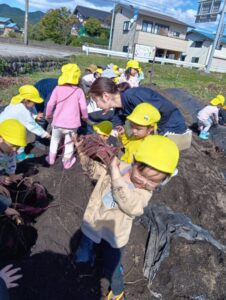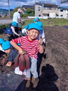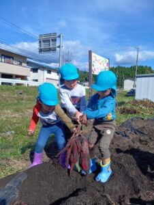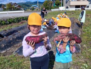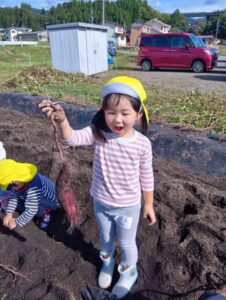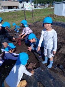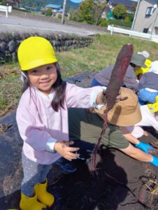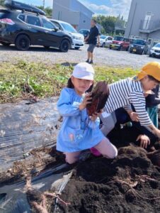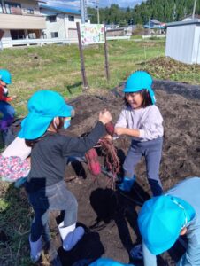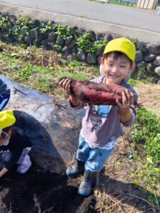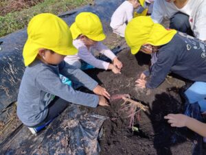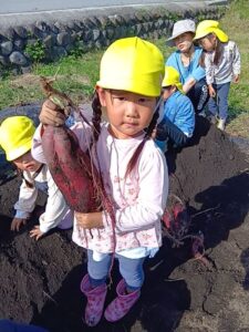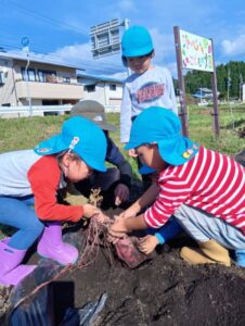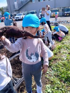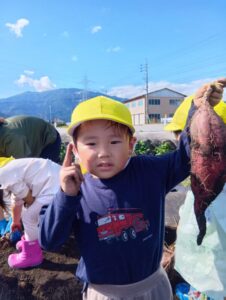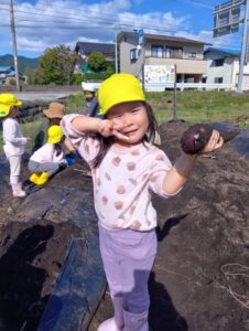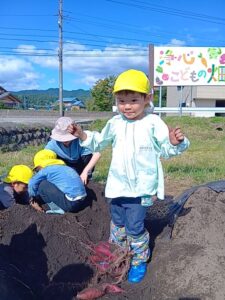 ひまわり組さんから畑に行き、「よし!大きいおいもをとるぞぉ~!!」と、気合が入りました!!