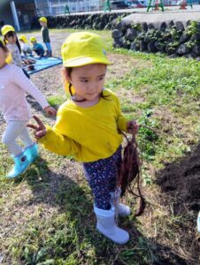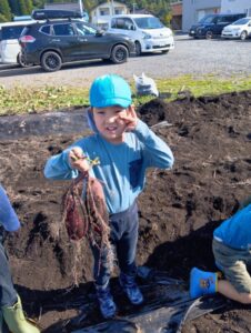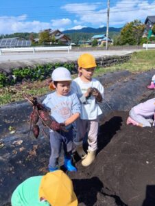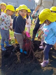 たんぽぽ組さんも、みんな頑張って掘って、おいもがとれました!