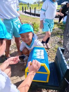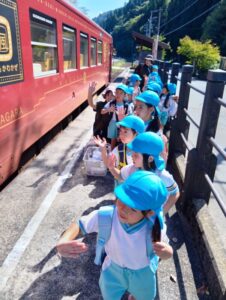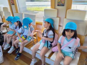 ゆり組さんみんなと一緒にレールバスに乗って、嬉しかったね!