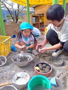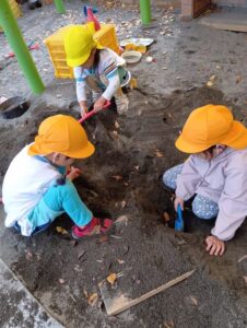 砂場での遊んでいても、いいくらいの気候できもちがいいですね!