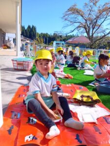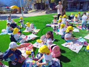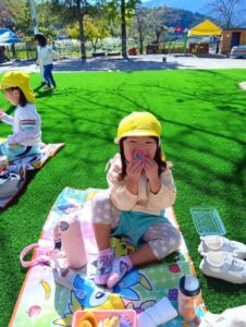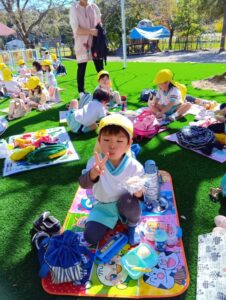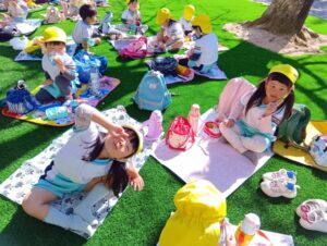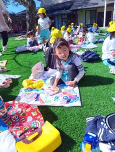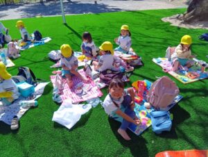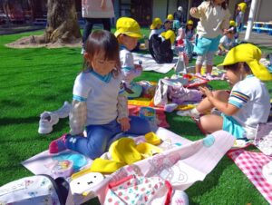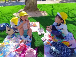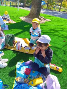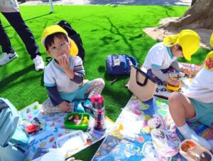 先週は、たんぽぽ組さんは新しい芝生の上で、お弁当をたべましたよ!