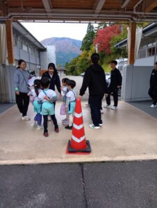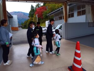 中学校のお兄さん、お姉さんたちが迎えに来てくれます。