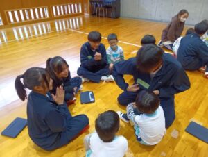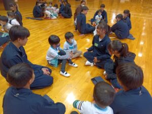 中学校の生徒さんたちは、この日のために、子ども達と絵本の読み聞かせや、子ども達とどんな風に関わっていけばいいのか・・・