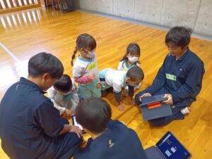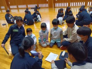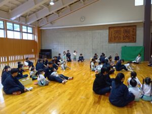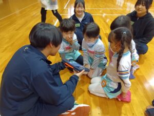 中学校のお兄さん、お姉さんたちも、いろいろ用意していた絵本やお話、クイズなどで