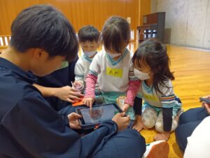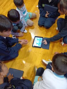 iPadを触らせてもらって、ひまわり組さんも嬉しそうです!