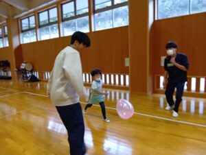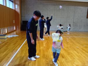 名前も覚えてもらい、次は体を動かす遊びをしました。