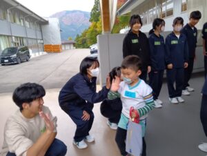 白鳥中学校3年生の授業で、園児とのふれあい体験を3日間に渡って行われます。
