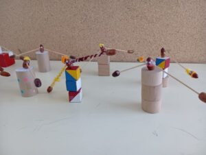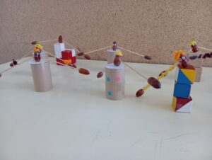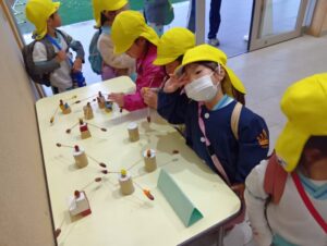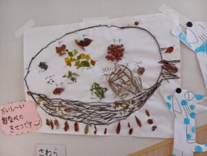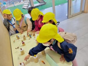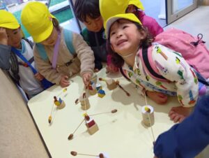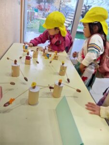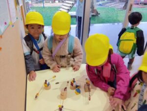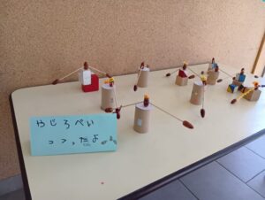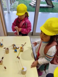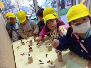 袋に入れてもってきてくれたり、どんぐりでやじろべえを作りました!!